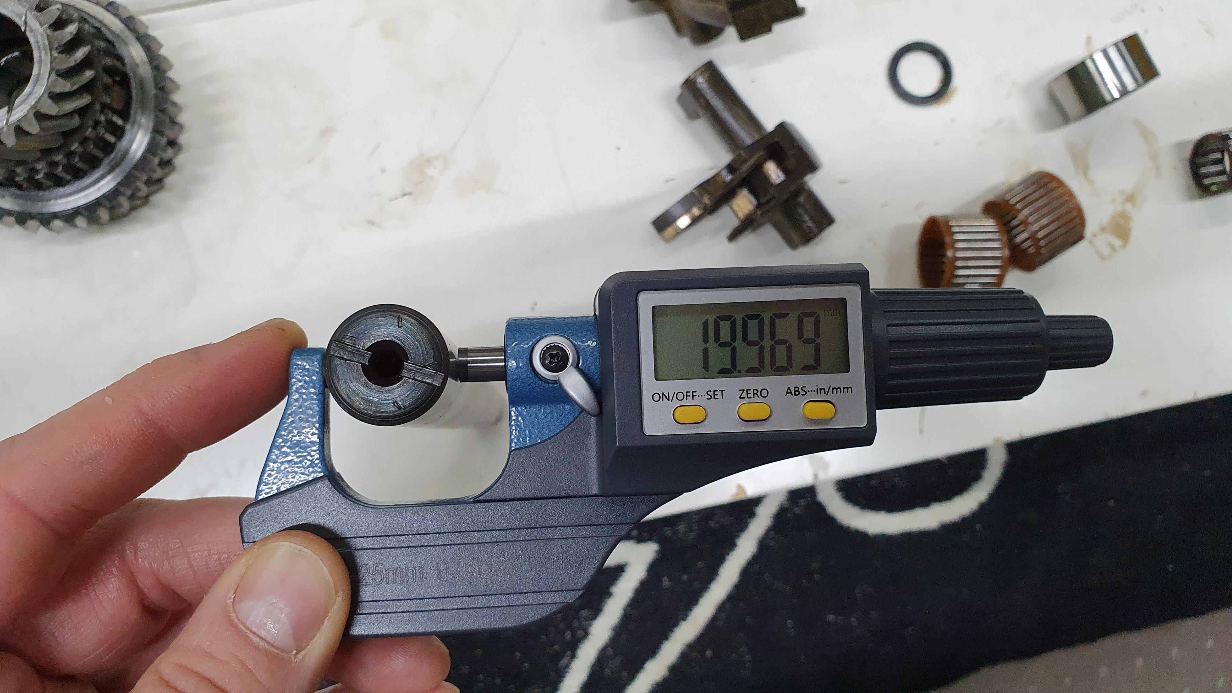 die beiden Gabeln habe ich gemessen. die 1st and 2nd speed fork ist ausgeleiert (zwischen 0,5 und 0,9mm wo ich dazwischen kam). bei der 3rd and 4th speed fork kam ich nirgends dazwischen. die sitzt aber noch sehr schön stramm und lässt sich parallel mit dazwischenliegendem Synchronhub kaum lateral verschieben. Denke die ist dann in Ordnung.