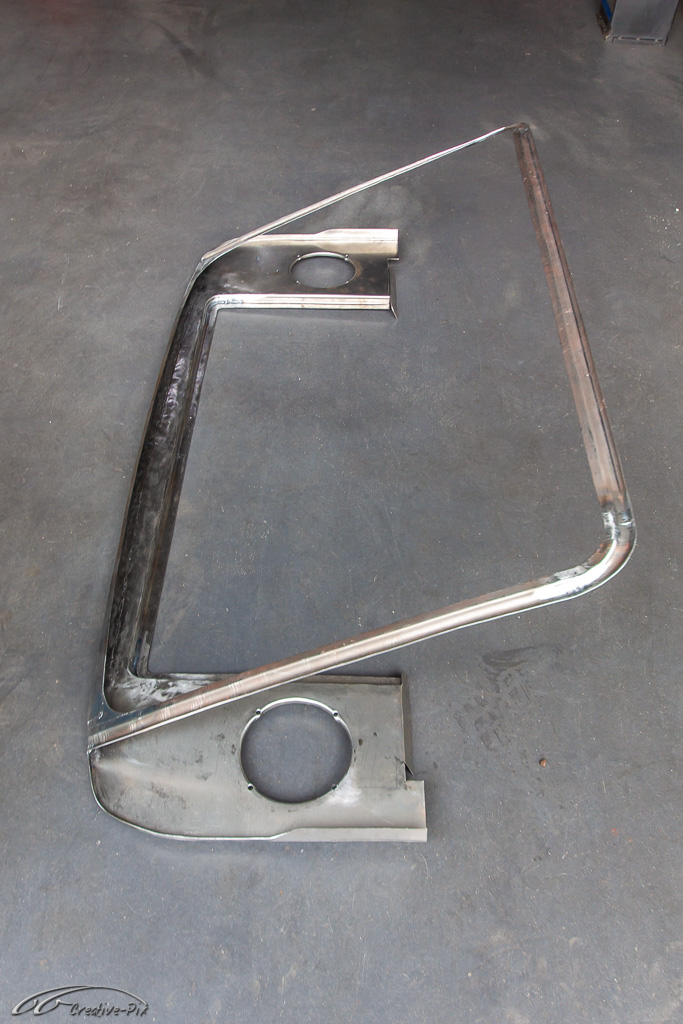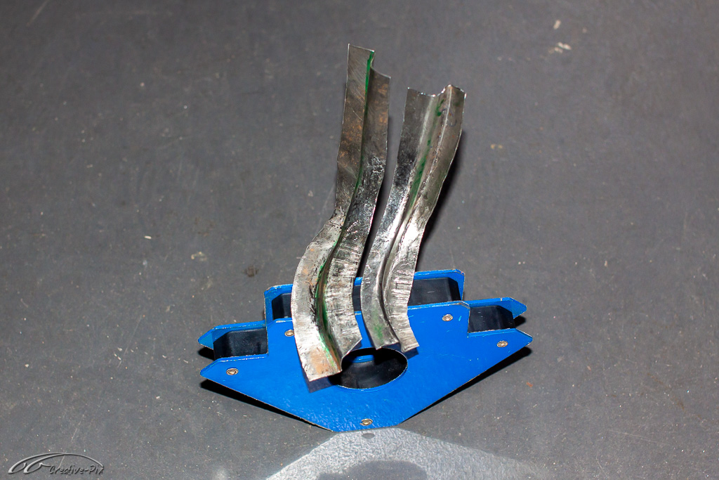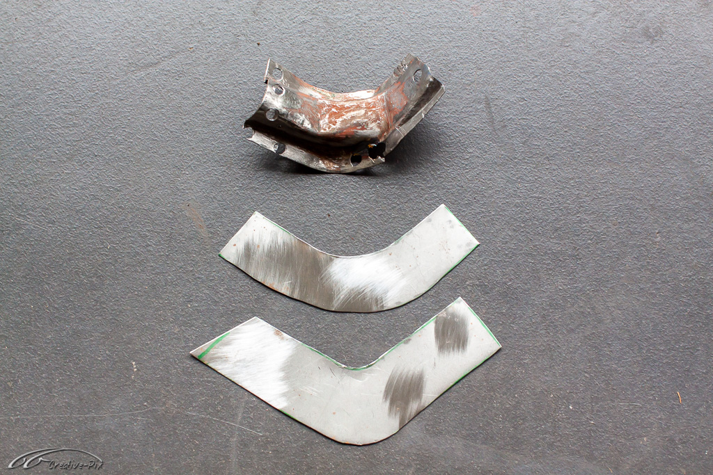 Nachdem ich die Schweißnaht verschliffen hatte, war ich sogar recht zufrieden mit der Optik und der Passform :cool:. Aber damit nicht genug. Nun musste ich dasselbe Teil noch einmal bauen, nur eben spiegelverkehrt :eek:.