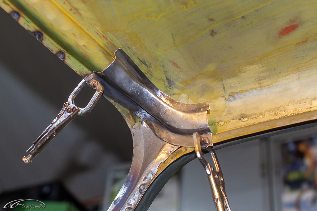 Abschließend habe ich alle drei Segmente im Fahrzeug mit der Karosserie, dem Dach und auch miteinander verschweißt.