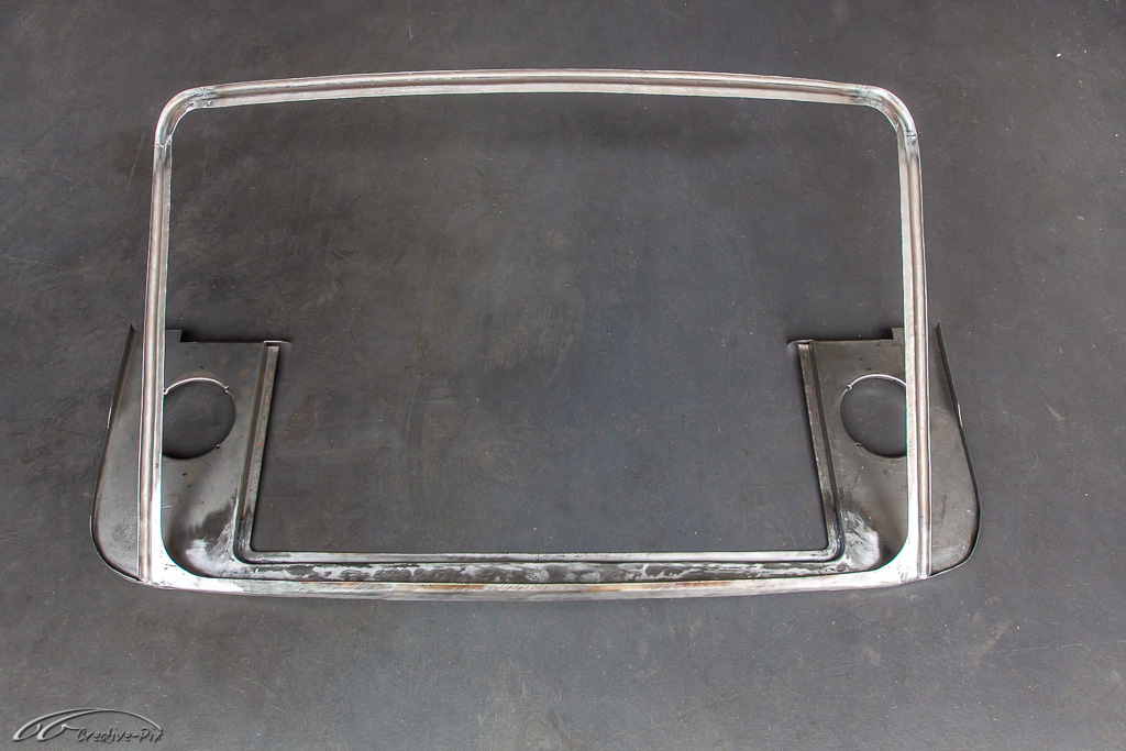 • Es ist hilfreich große und komplexe Teile soweit es geht außerhalb vom Fahrzeug vorzubereiten und auch zu verschweißen, um sie dann als komplette Einheit mit der Karosserie zu verbinden. So habe ich es mit der Hutablage und den inneren Rahmen der Heckscheibe gemacht. Natürlich habe ich beide Teile in der Karosserie aneinander angepasst, dann aber im ausgebauten Zustand verschweißt. Man macht sich das Leben damit deutlich einfacher.