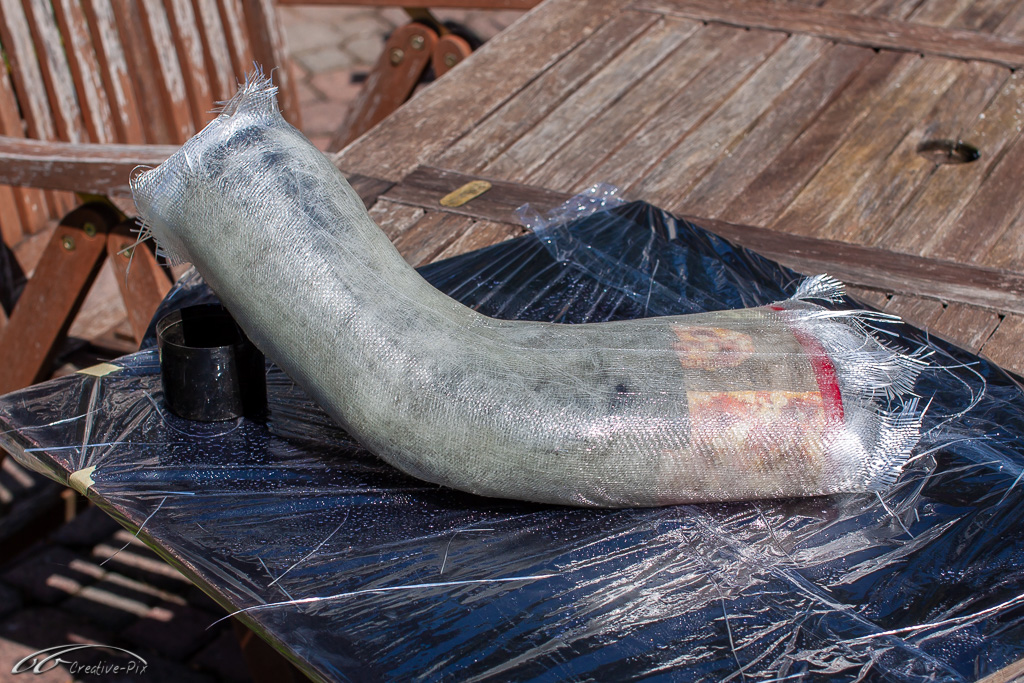 Nachdem die soweit passte, habe ich mehrere Lagen GFK darum herum laminiert.