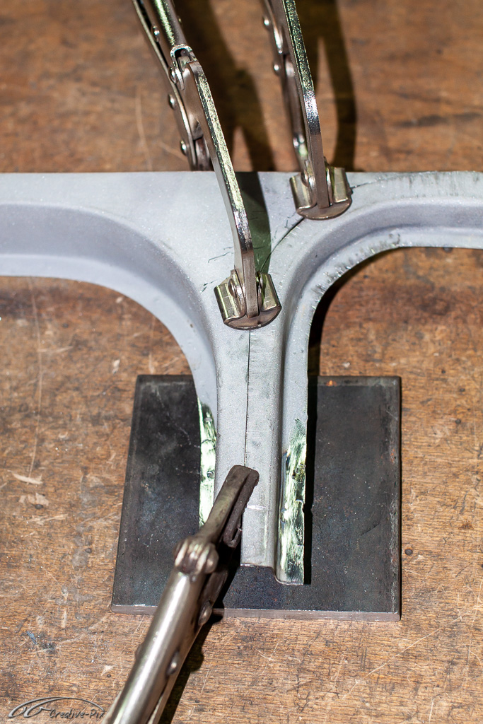 Etwas mehr Zeit geht auch für die Vorbereitung drauf. Beide Bleche sollten wirklich super auf Stoß liegen. Beim Schutzgasschweißen kann man da schon mal den ein oder anderen größeren Spalt überbrücken und zubraten.