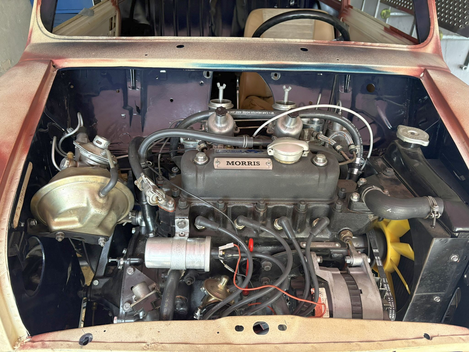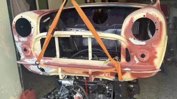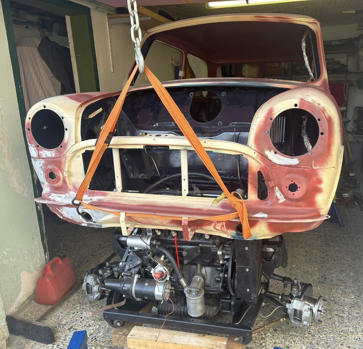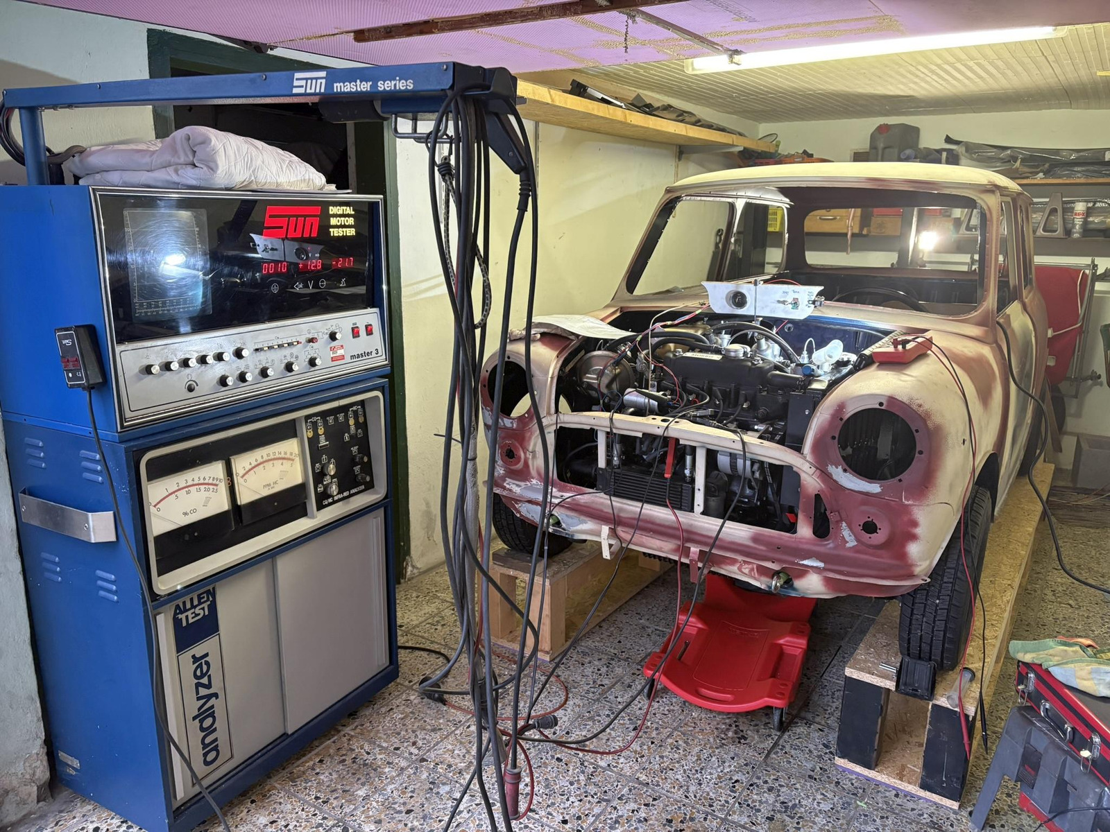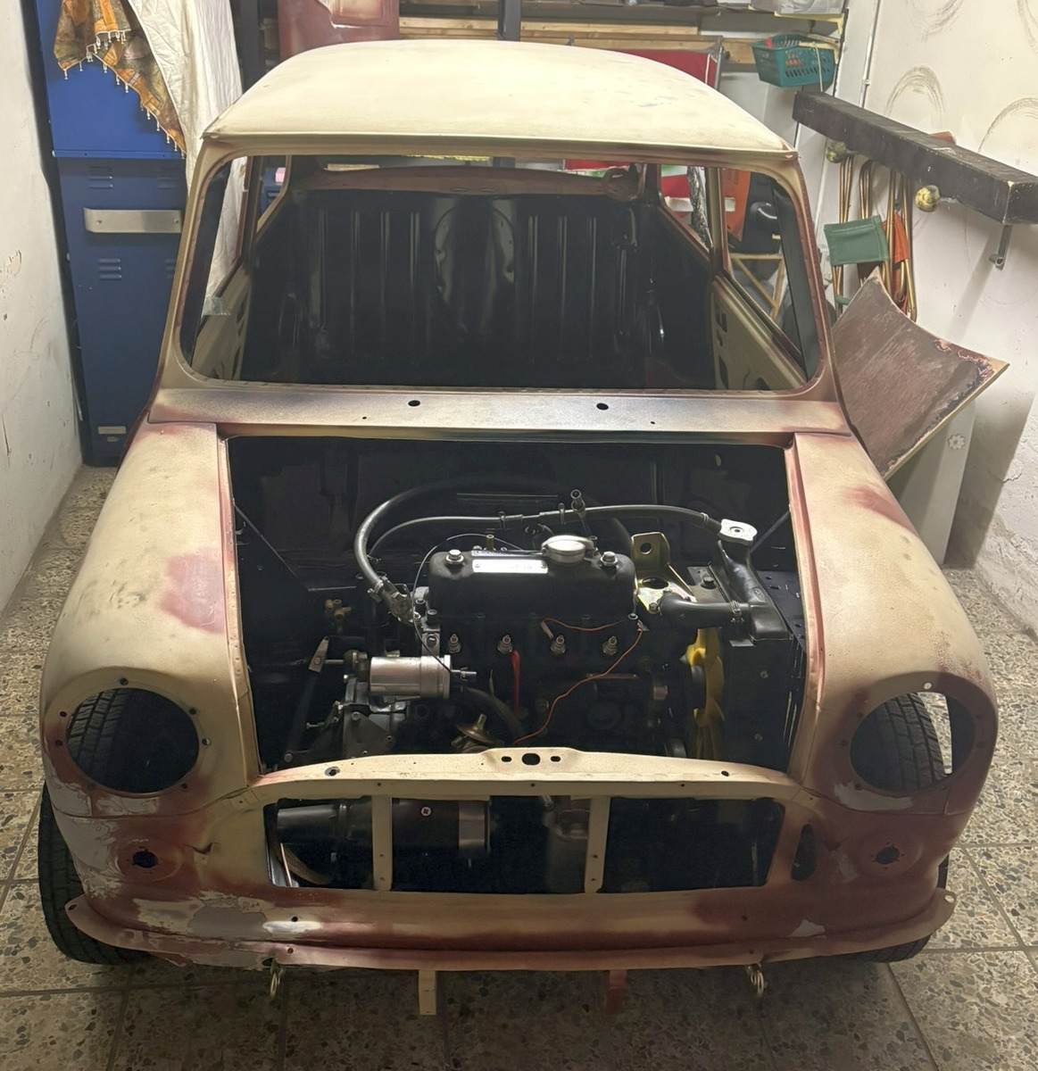 Nachdem er weitere 6 Jahre bei mir in der Garage gestanden hat, währenddessen ich ein paar Innocentiteile zu horrenden Preisen kaufte, haben mein (mittlerweile auch autoaffine) Sohn und ich mit der Restauration begonnen. Ziel ist ein optisch total originaler Wiederaufbau, mit nur wenigen zeitgemäßen Kompromissen was Fahrwerk und Motortuning angeht. Mit zeitgemäß mein ich nicht einen Arden 8-Port mit Lukas Mk1 (mein Traum