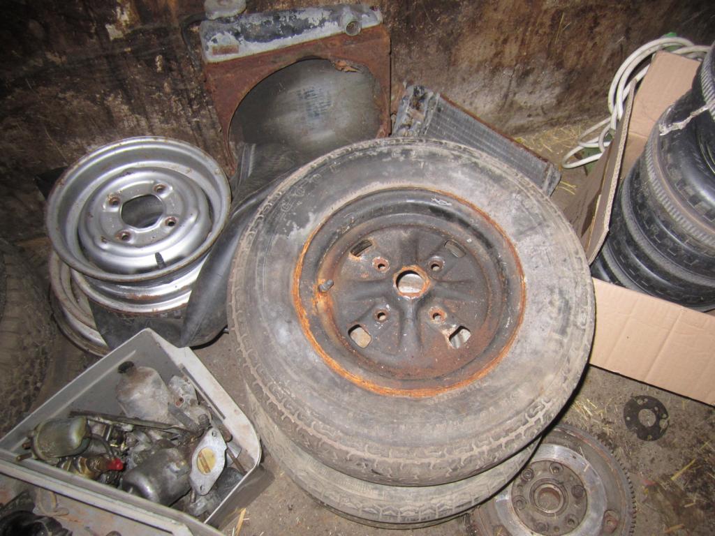 Zu verschenken sind die Scheiben, Gebläse, Estate Tank, 10" und 12" Stahlfelgen, Gullideckelfelgen, Trommelbremsanlagen, Inno Haube, Heizungsluftschläuche, Scheinwerfer, Türen, Schaltgestänge.