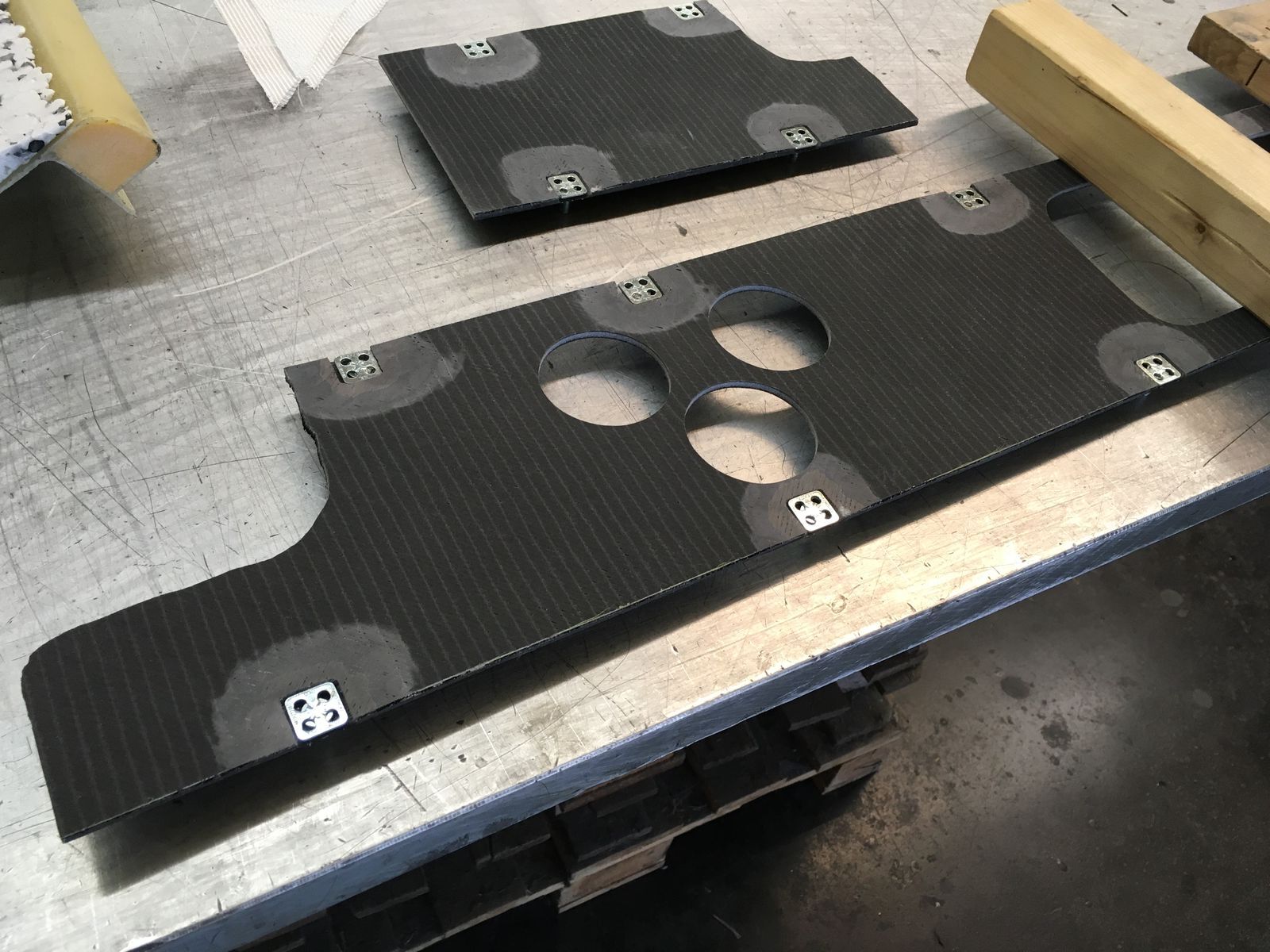 In einem weiteren Arbeitsschritt wurden Gewindeinserts einlaminiert, damit das Schloss später von außen verschraubt werden kann.