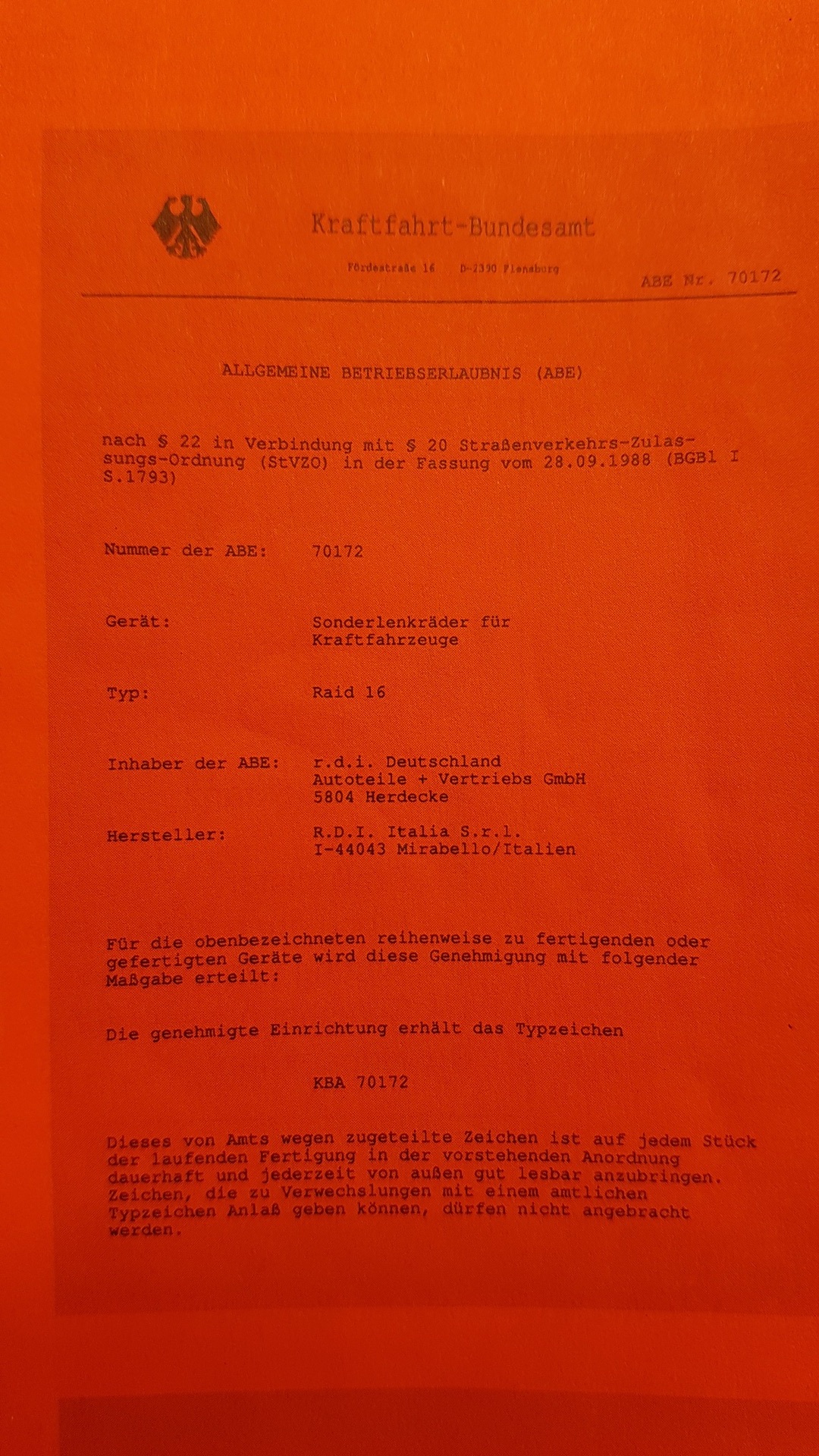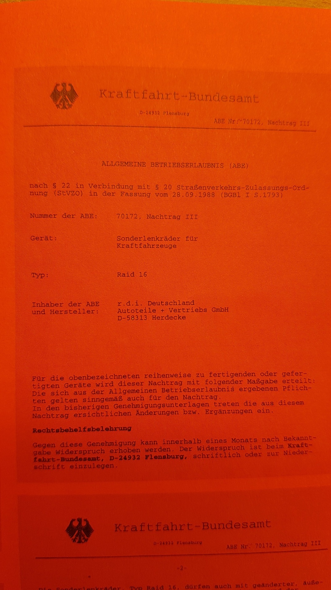 ABE Lenkrad Typ „Raid 16“
