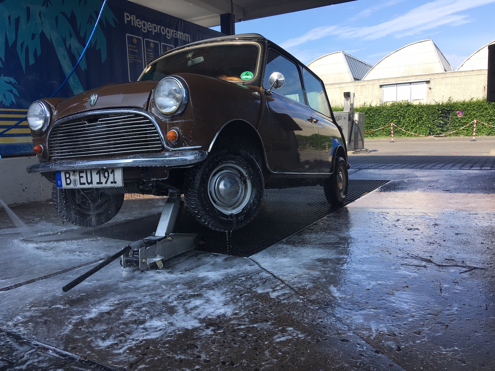 2007 haben wir den Mini rückbauen alassen - nun sieht er aus wie ein Bj. ca. 1965-70, ausgenommen die fehlenden aussenliegenden Türscharniere.