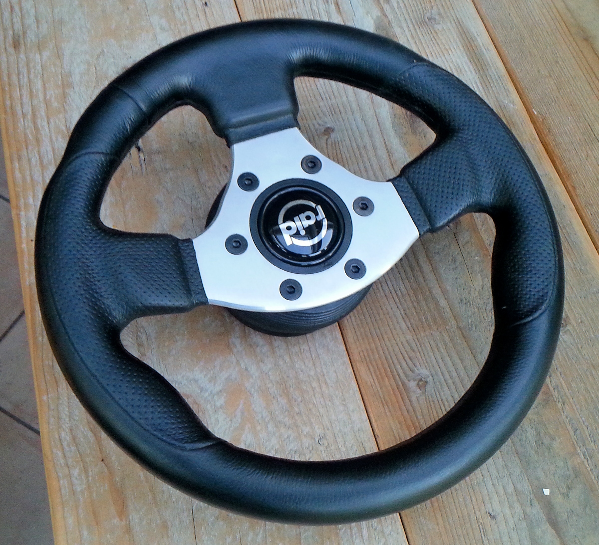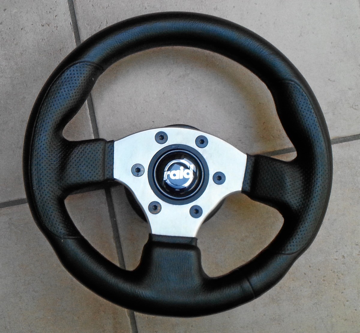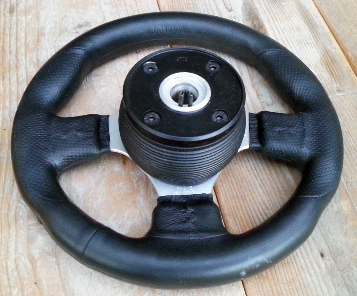 verkaufe ein wirklich winziges Lederlenkrad von Raid. Sehr moderne Optik, schwarz/silber, Außendurchmesser 28 cm. Mit originalem Hupenknopf.
