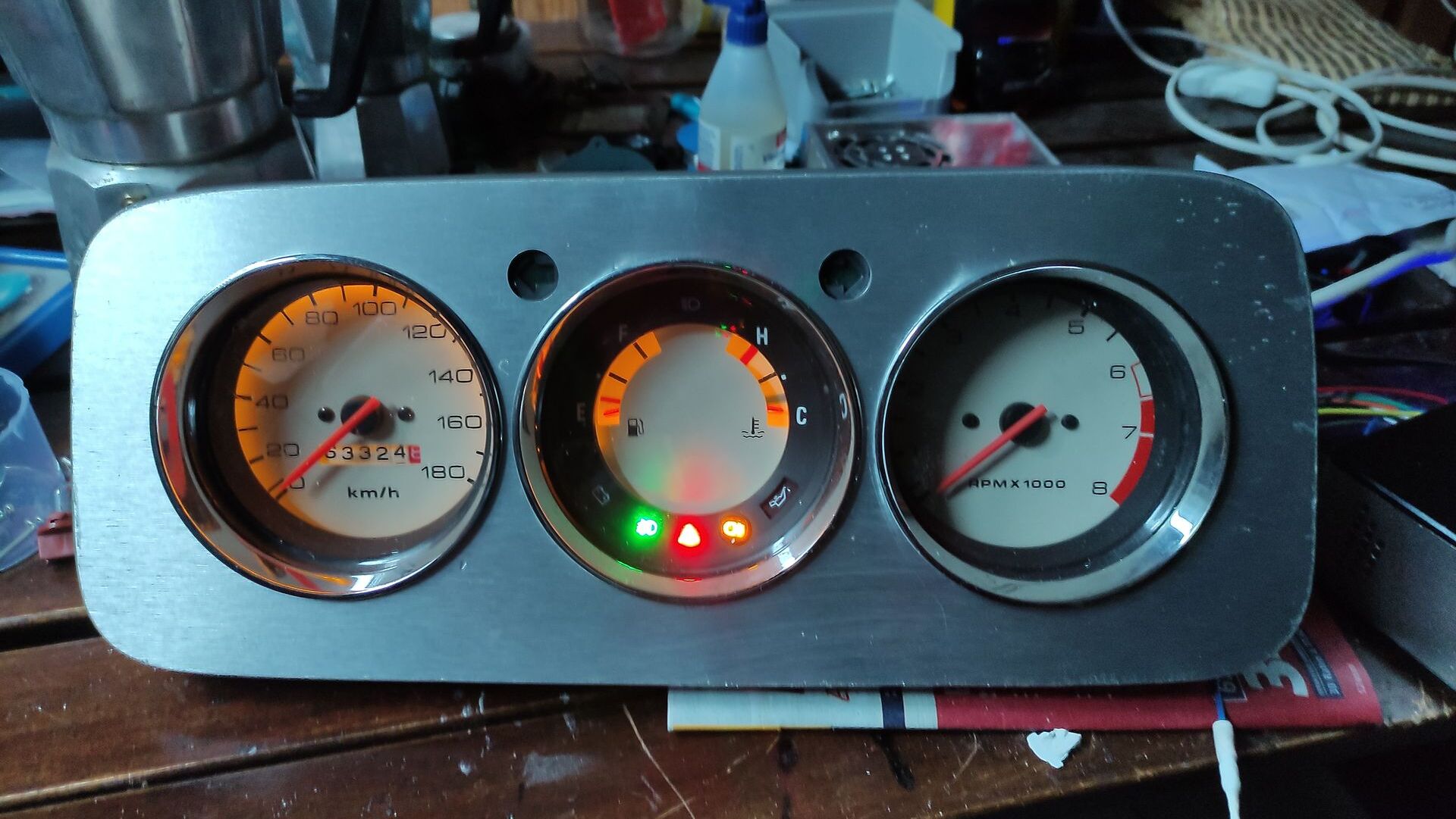 Kontrollleuchten Warnblinker und Nebelleuchten kamen in das mittlere Instrument.