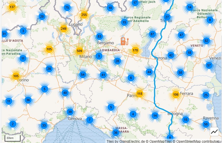 Ich war gerade in Norditalien unterwegs, schlechtes Geläuf für E Autos.