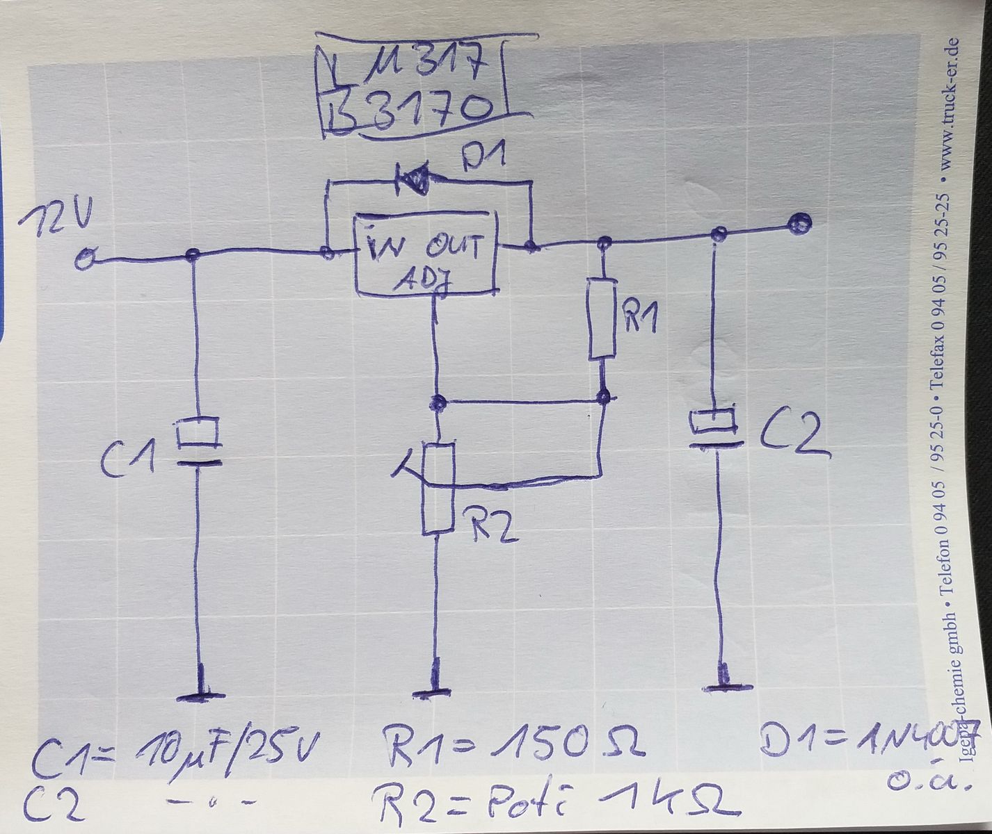 1x LM317 (ich hab noch einige B3170 aus DDR Beständen)