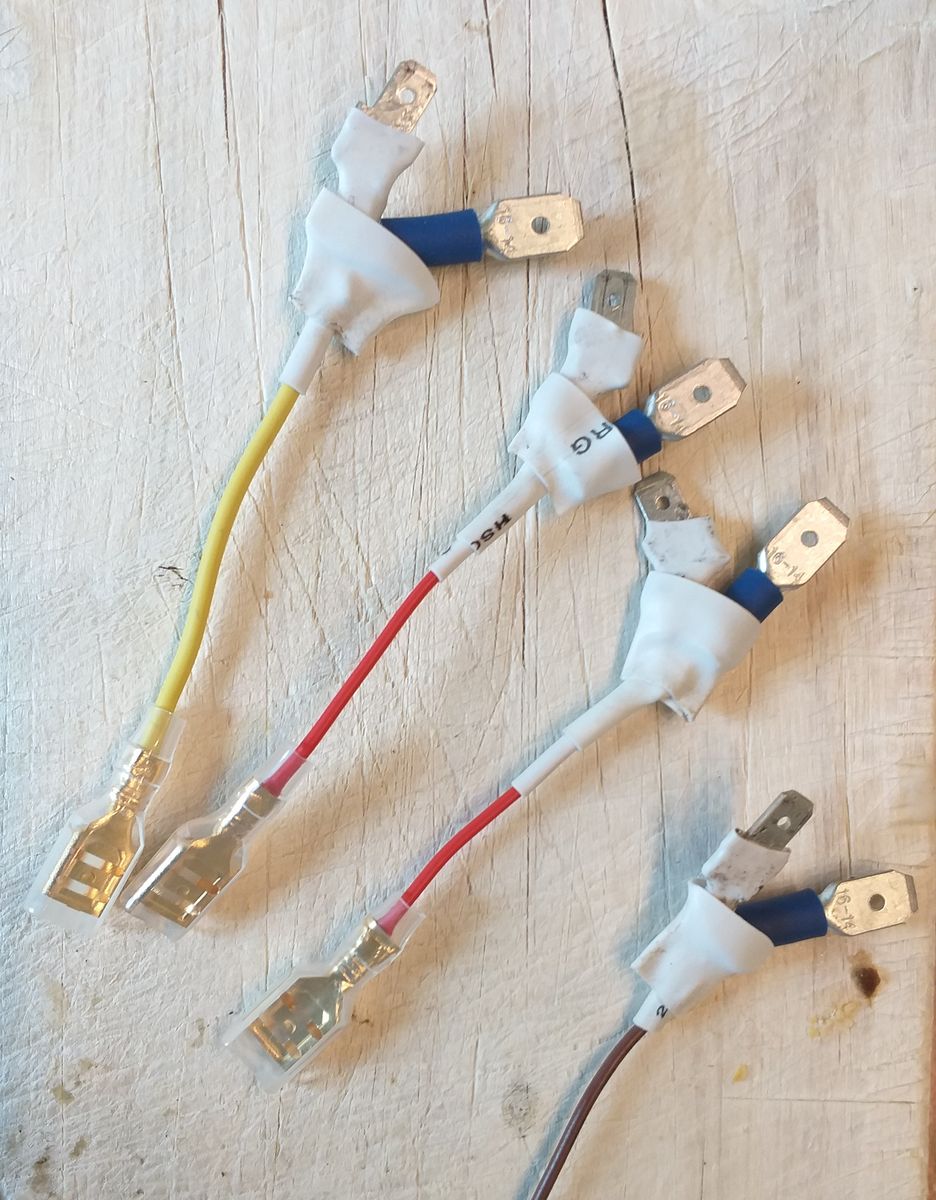 Einige Kabel, Flachstecker und Flachsteckhülsen.