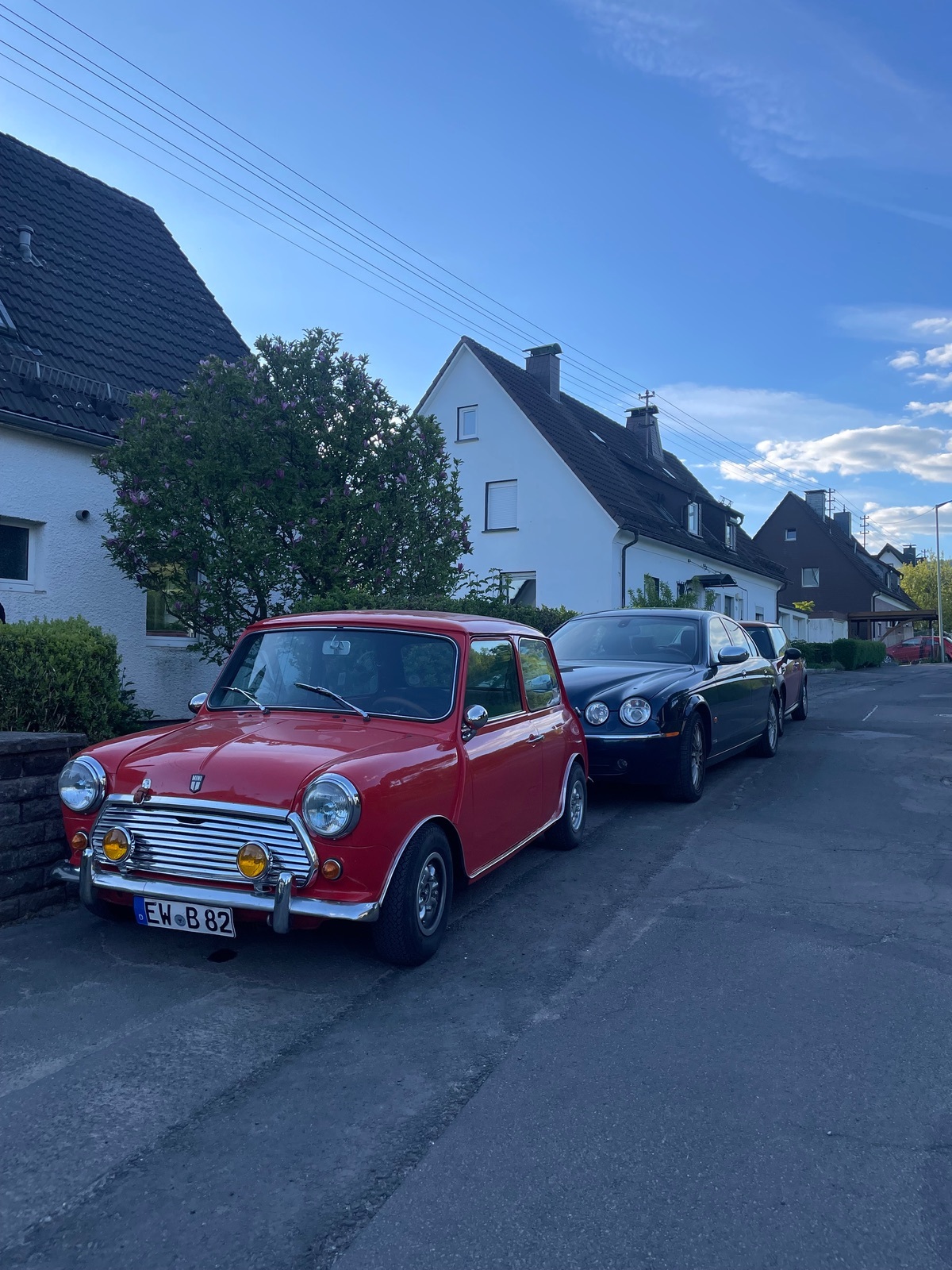 Innocenti Mini Cooper 1300 Export 02/74: Wartet auf Lack (Prugna/Bianco Avorio). Motor und Achsen müssen noch...