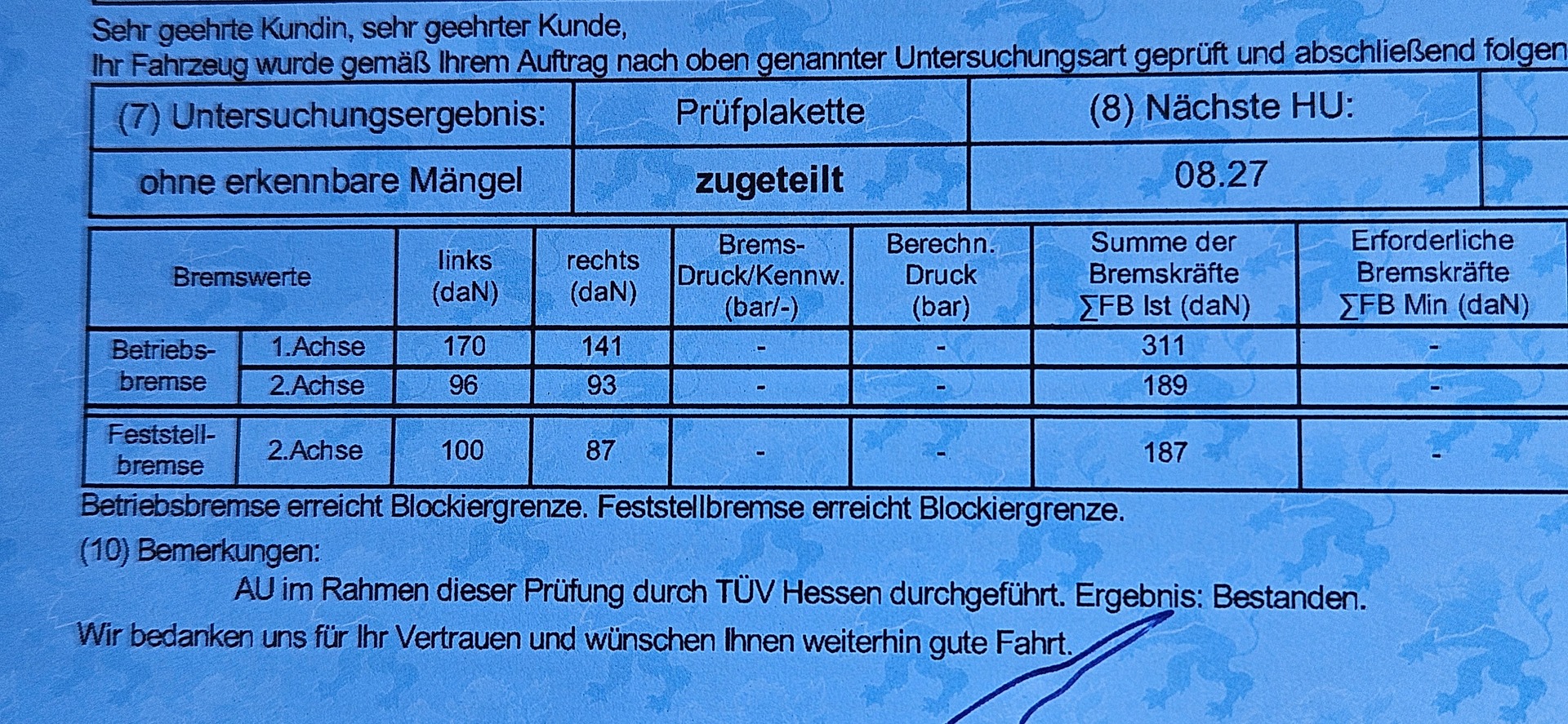 Die erste Achse ist für eine Serienbremse m.E. in Ordnung. Ca. 150 daN passen.