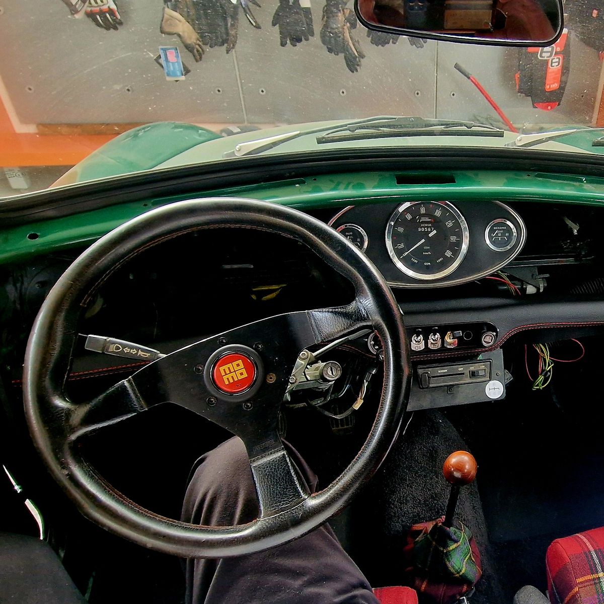 Innocenti Mini Cooper 1300 Export 02/74: Wartet auf Lack (Prugna/Bianco Avorio). Motor und Achsen müssen noch...