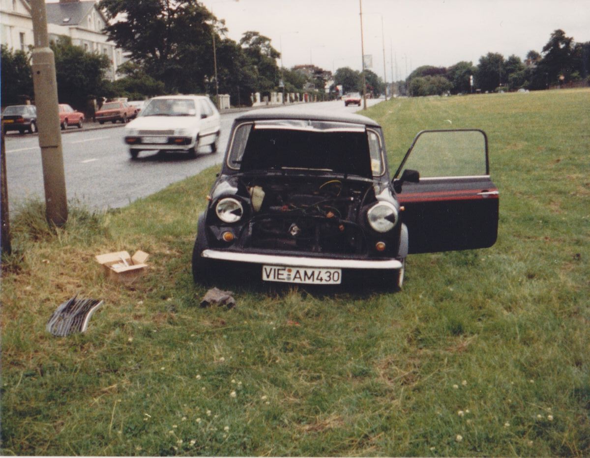 Mein erstes Auto war ein Mini. Leider weiss ich nicht mehr viel über das Fahrzeug. Unterlagen existieren nicht mehr, nur noch wenige Photos. Er war von 1979er. Trotz des Special-Aufklebers auf der Seite, war es glaube ich kein 1100er Motor. Es war eine kurze und unglückliche Beziehung zwischen uns, trotz einiger toller Erlebnisse damit.
