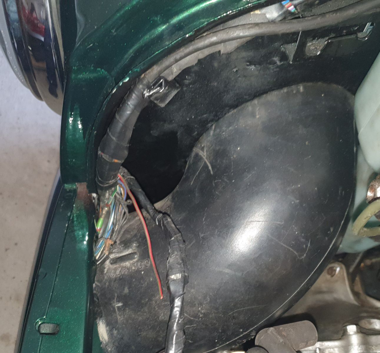 . Das Kabel lag schon dort so unnütz rum als ich den Mini gekauft hatte. Nun ist alles angeschlossen und Licht,Blinker usw. funktioniert. Es kommt aus dem dicken Kabelbaum auf der rechten Seite raus und hat die Farbe rot/grün. Hat jemand eine Idee, oder kann vielleicht bei sich mal einen Blick in den Motorraum werfen? ![]()