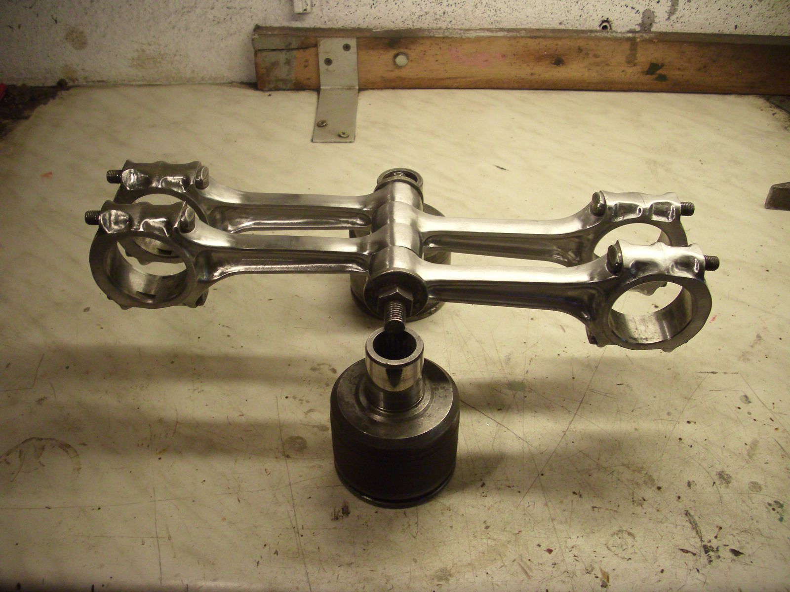 Kenner der Problematik des Minimotors (nur drei Hauptlager, asymetrische Pleuele und Kupplung weit enfernt vom letzten Hauptlager) wissen daß ein penibelst ausgewuchteter Kurbeltrieb hier besonders wichtig ist - insbesondere bei Leistungsgesteigerten Motoren! Eine ausgewuchtete Kurbelwelle allein reicht leider nicht.