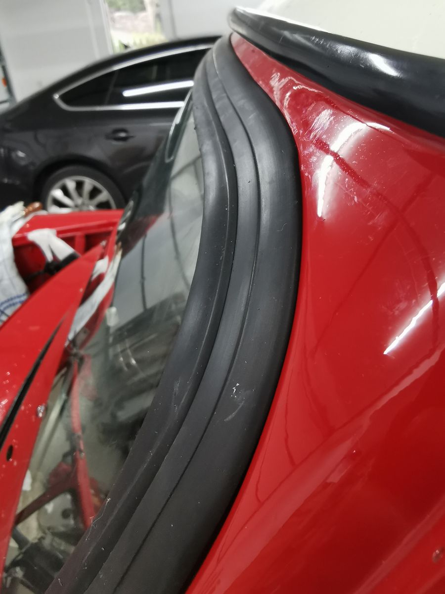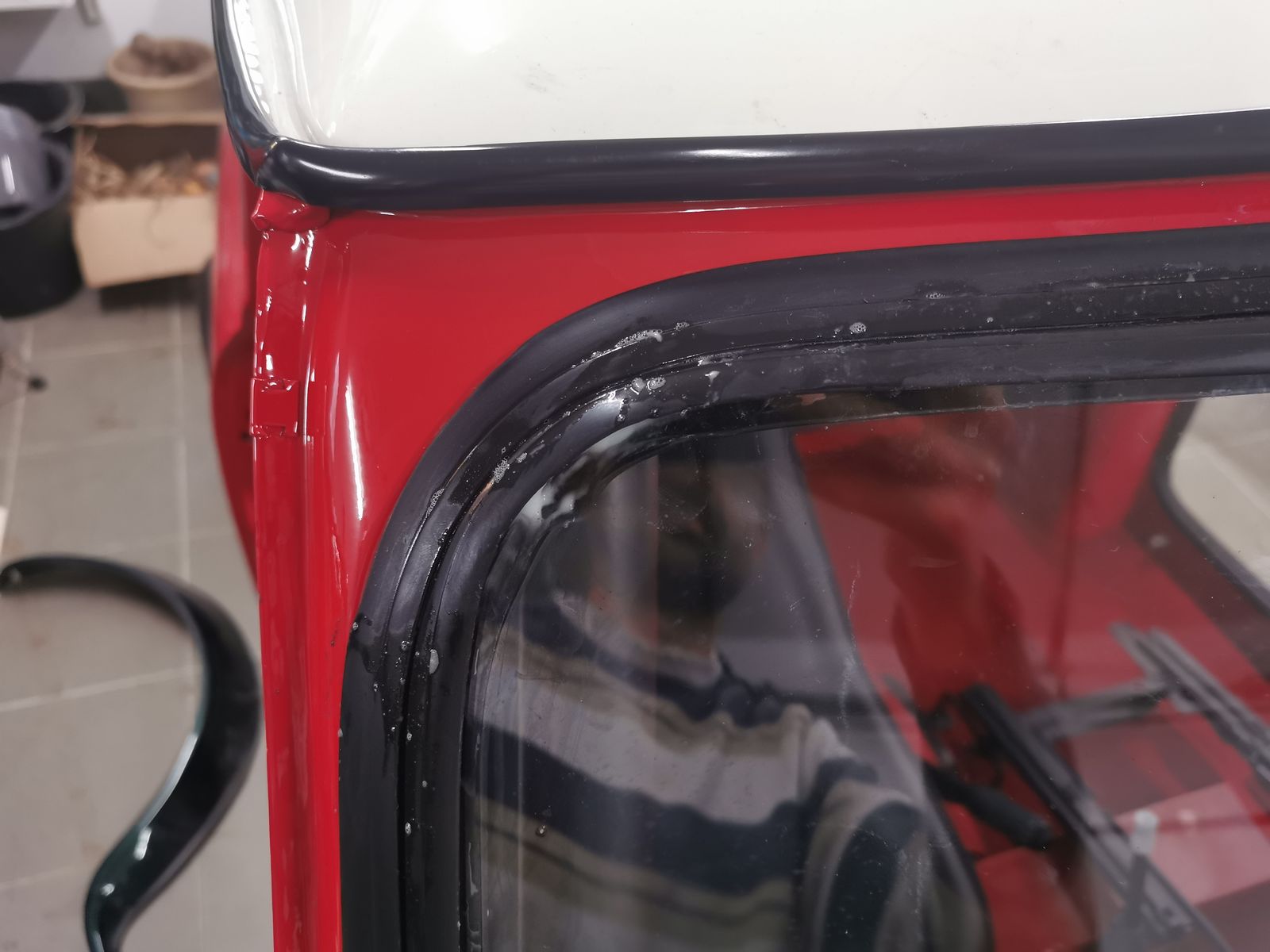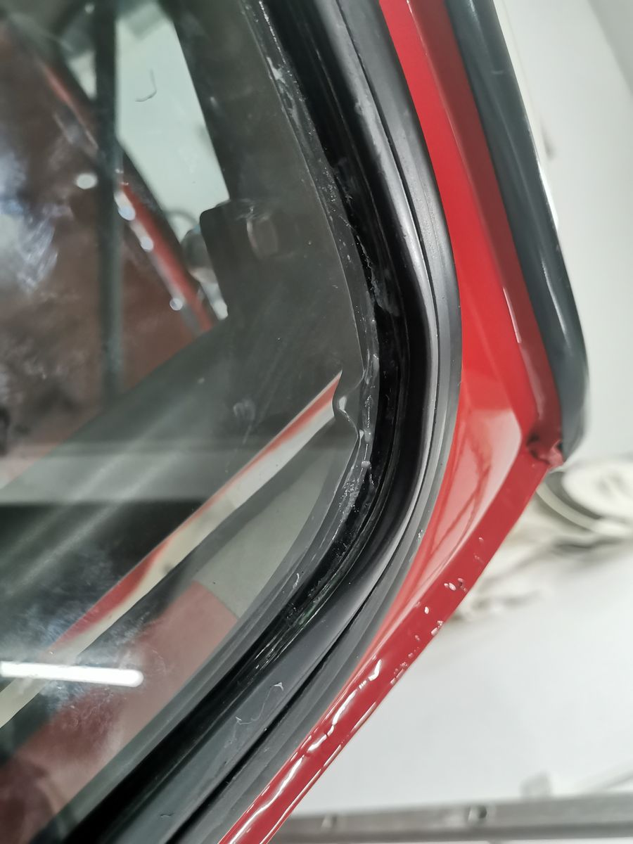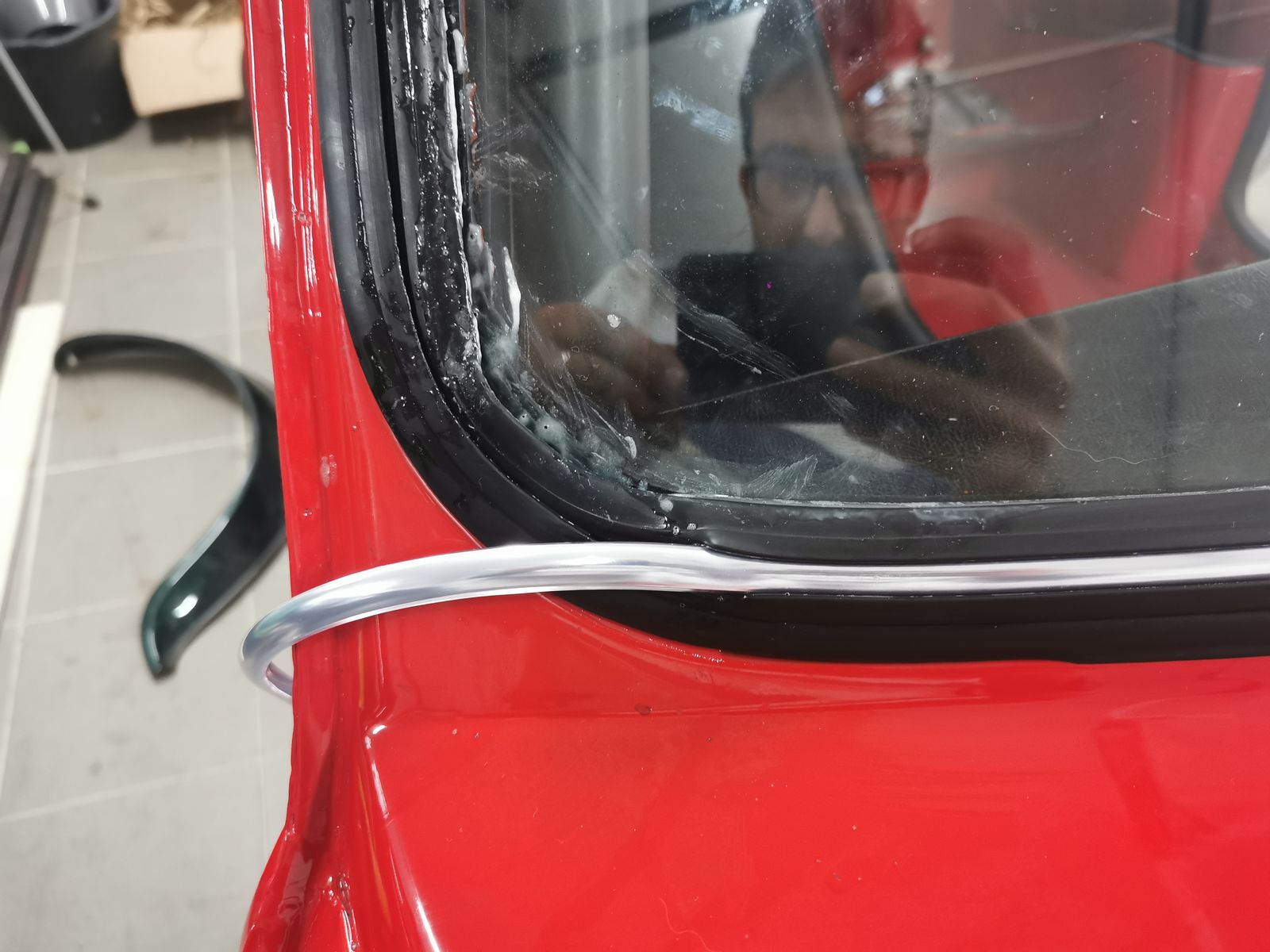 Altes Auto (Frontscheibenöffnung durchgehend parallel verlaufend nach Schweißarbeiten), Neuer GUMMI von Limora und alte Scheibe.