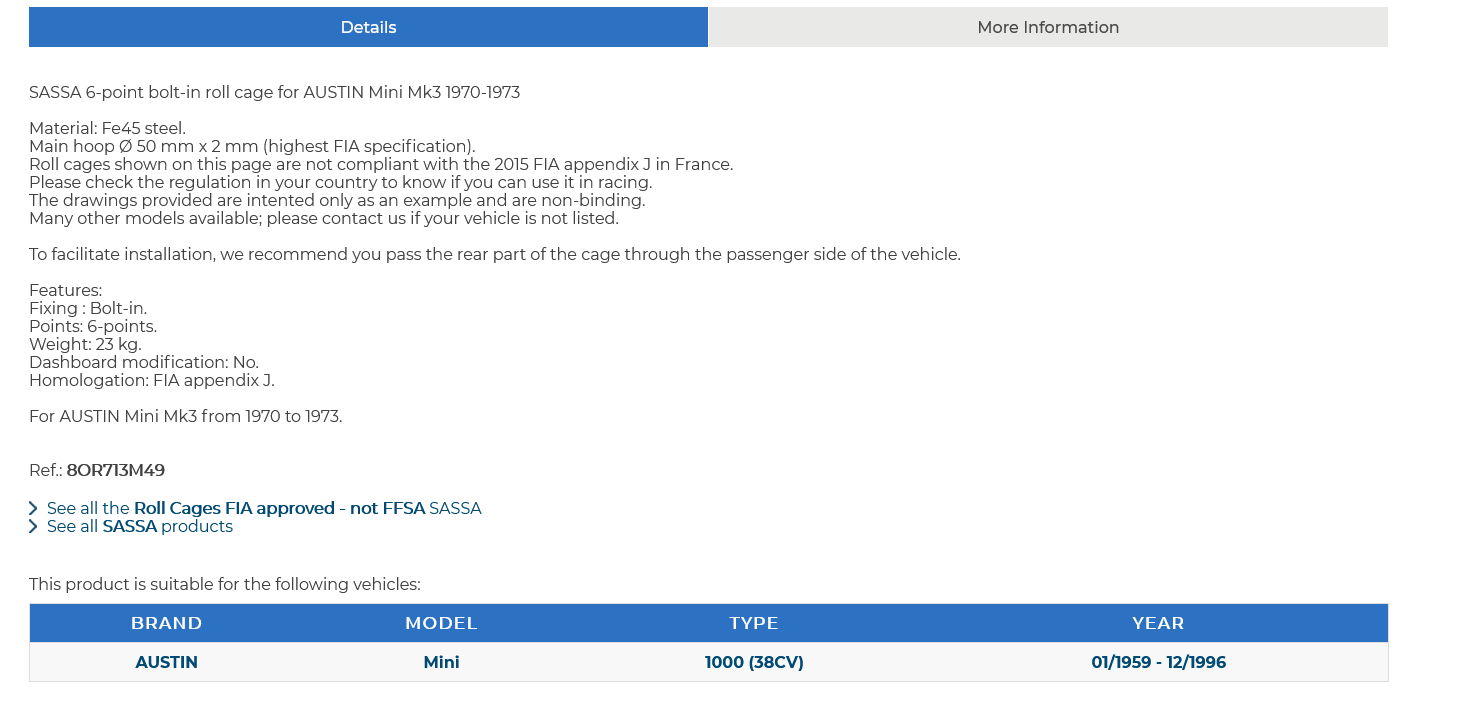 Typ Sassa 6-point bolt-in roll cage mit herausnehmbaren Streben.