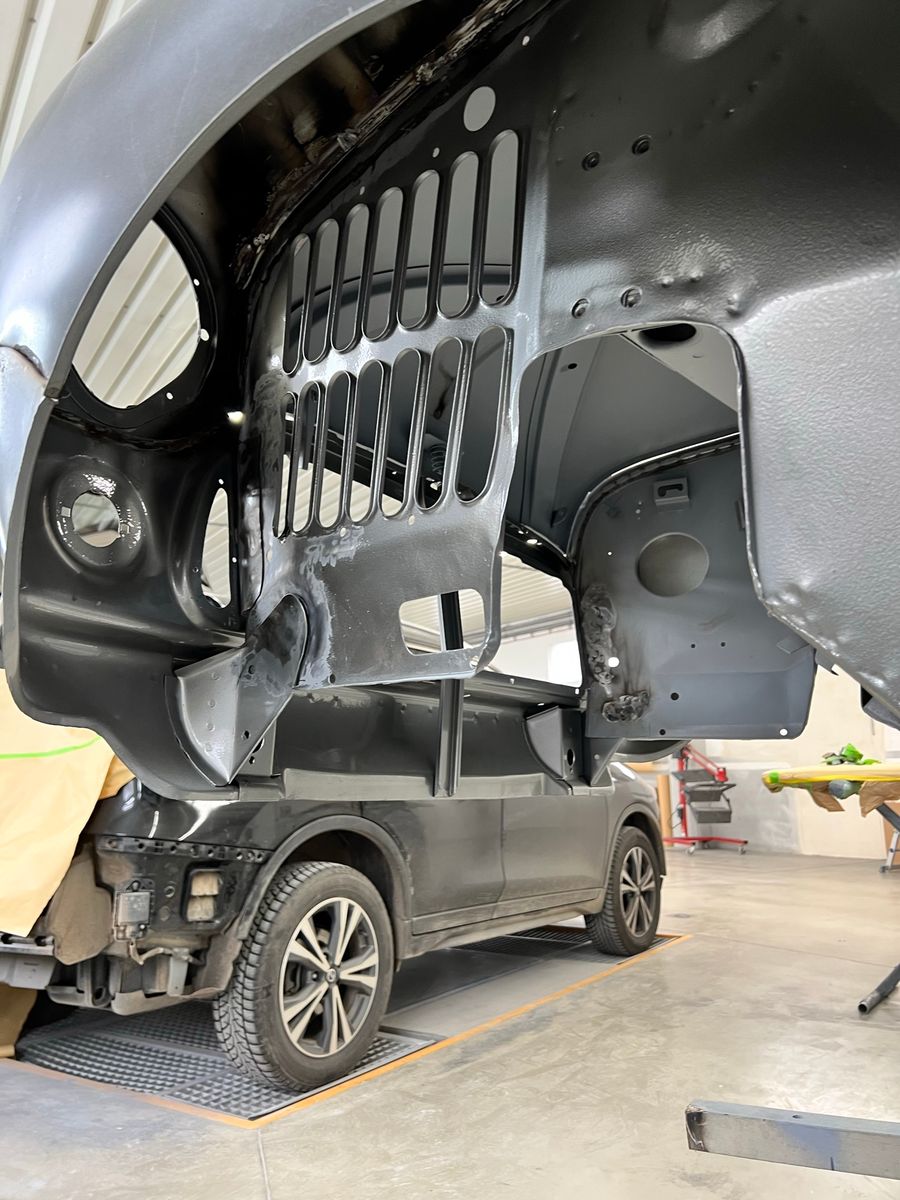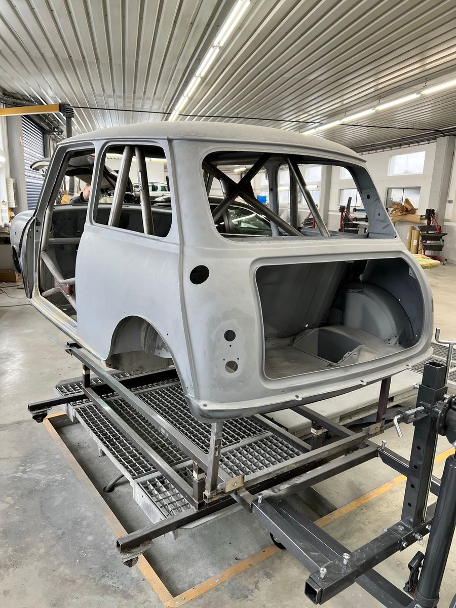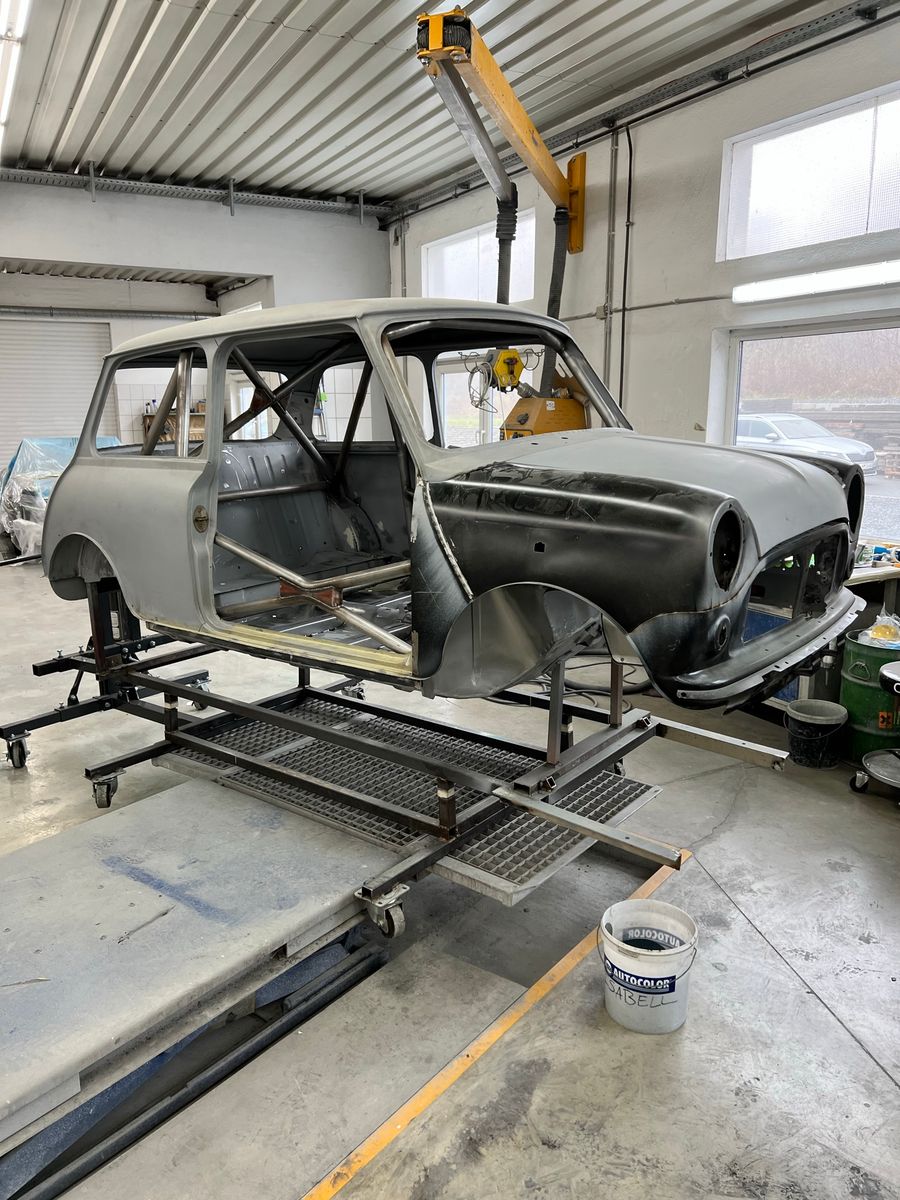 Liebe Minigemeinde, nachdem mein Mini im Entlackungsbad war, viele neue Blechsteile bekommen hat und nun fertig durchgeschweißt ist, wird die Karosse in den nächsten 14 Tage fertig lackiert.