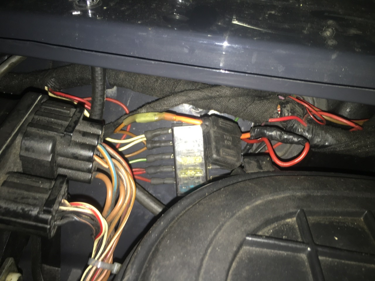[Allerdings kommt es mit dem Sicherungskasten nicht hin. Anstatt des einen RTC440A mit 4 Glas-Sicherungen hat meiner 2 Sicherungskästen mit jeweils 5 Flachsteck-Sicherungen und vielen andersfarbigen Kabeln. Recht unordentlich. Aber das ist eine andere Baustelle. Irgendwann möchte ich gerne den Kabelbaum ersetzen in einem originaleren Zustand versetzen und hätte den 24er-Kasten innen. Oh je, das würde ja wohl gar nicht gehen ...