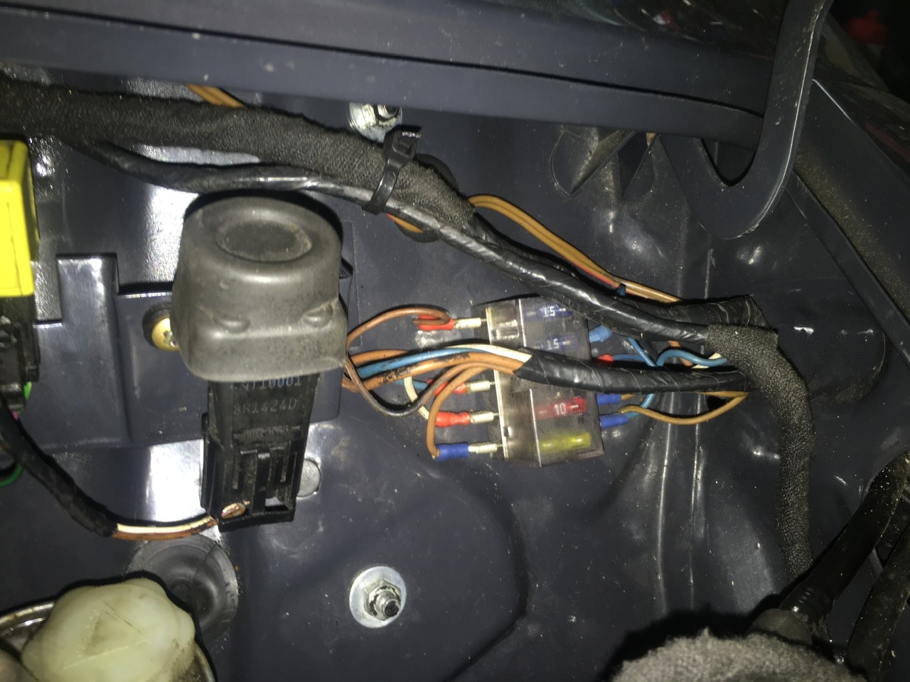 [Allerdings kommt es mit dem Sicherungskasten nicht hin. Anstatt des einen RTC440A mit 4 Glas-Sicherungen hat meiner 2 Sicherungskästen mit jeweils 5 Flachsteck-Sicherungen und vielen andersfarbigen Kabeln.