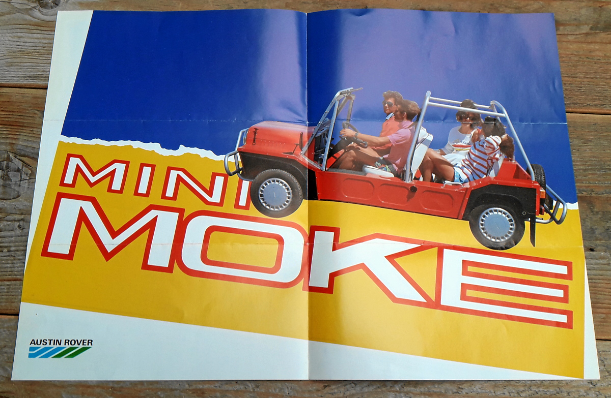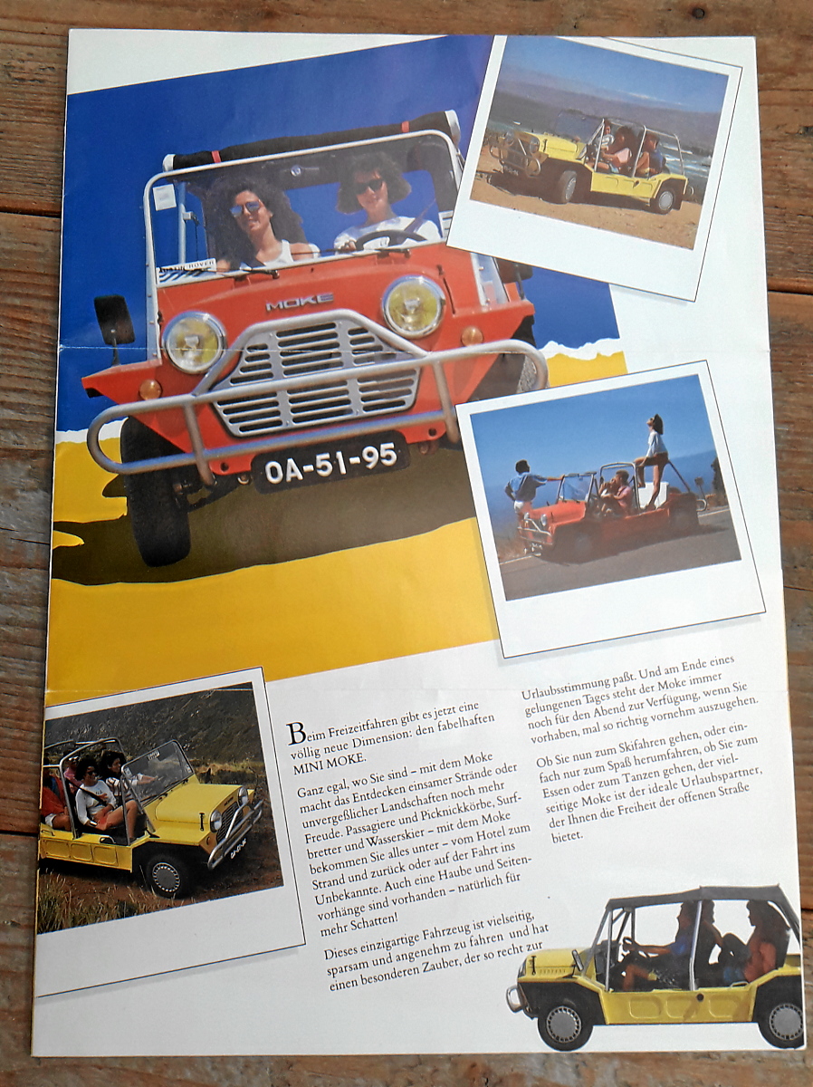 2) Faltblatt Austin/Rover Mini Moke, 4-seitig, deutsch, sehr guter Zustand
