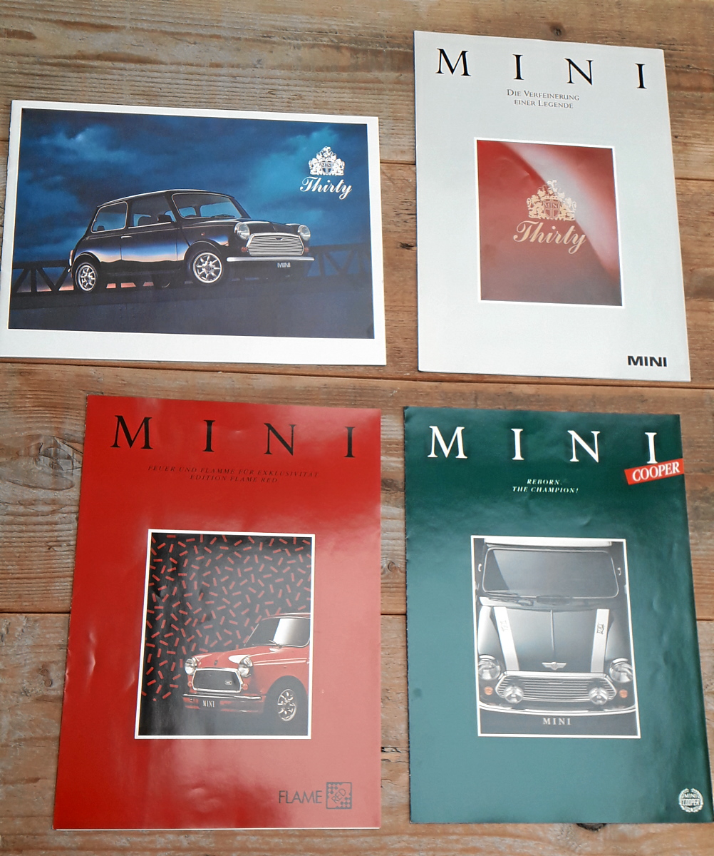 11) übergroßer 16-seitiger Katalog Mini SPI Cooper / Mayfair / Special, 1992, deutsch, incl. Separater Preisliste und Farbkarte, Karton und schweres Papier. Guter Zustand.