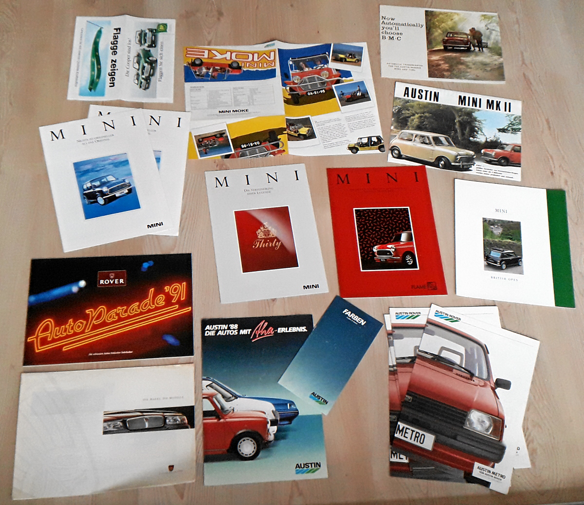 6) 8-seitiges Faltblatt Austin Mini Mk II, deutsch, Reprint aus „Das Große Mini-Buch“, sehr guter Zustand