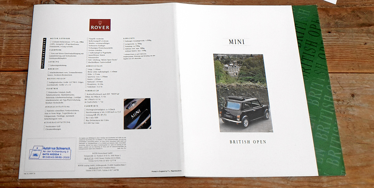 7) 8-seitiges Faltblatt ( schwerer Karton) Mini British Open 1993, deutsch, top Zustand