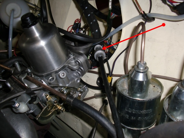 • Hier geht die Tachowelle durch. Loch gerade groß genug machen damit die Rändelmutter durch passt und dem passenden O-Ring (Gummi).