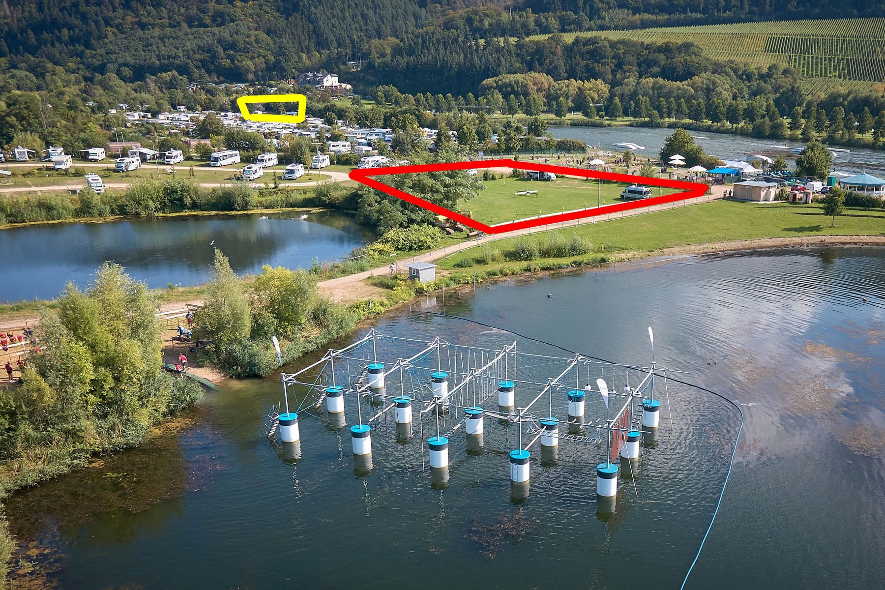 Für alle, die schon einmal dort waren: Auf diesen beiden Bildern ist unsere neue Campingwiese in rot markiert, die alte Campingwiese in gelb.