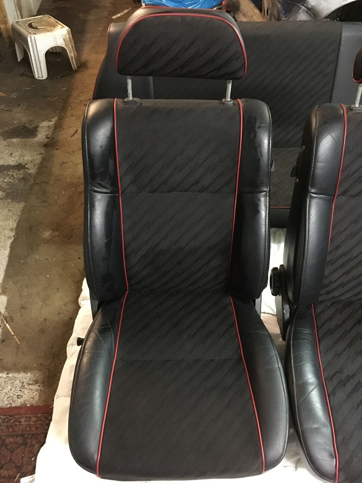 Verkaufe kompletten Satz Sitze, Rücksitzbank und Türpappen aus einem 94er Cooper. Das sind die besser konturierten mit zwei Kopfstützenstangen. Der Bezug nennt sich black lightning wenn ich das richtig in Erinnerung hab.
