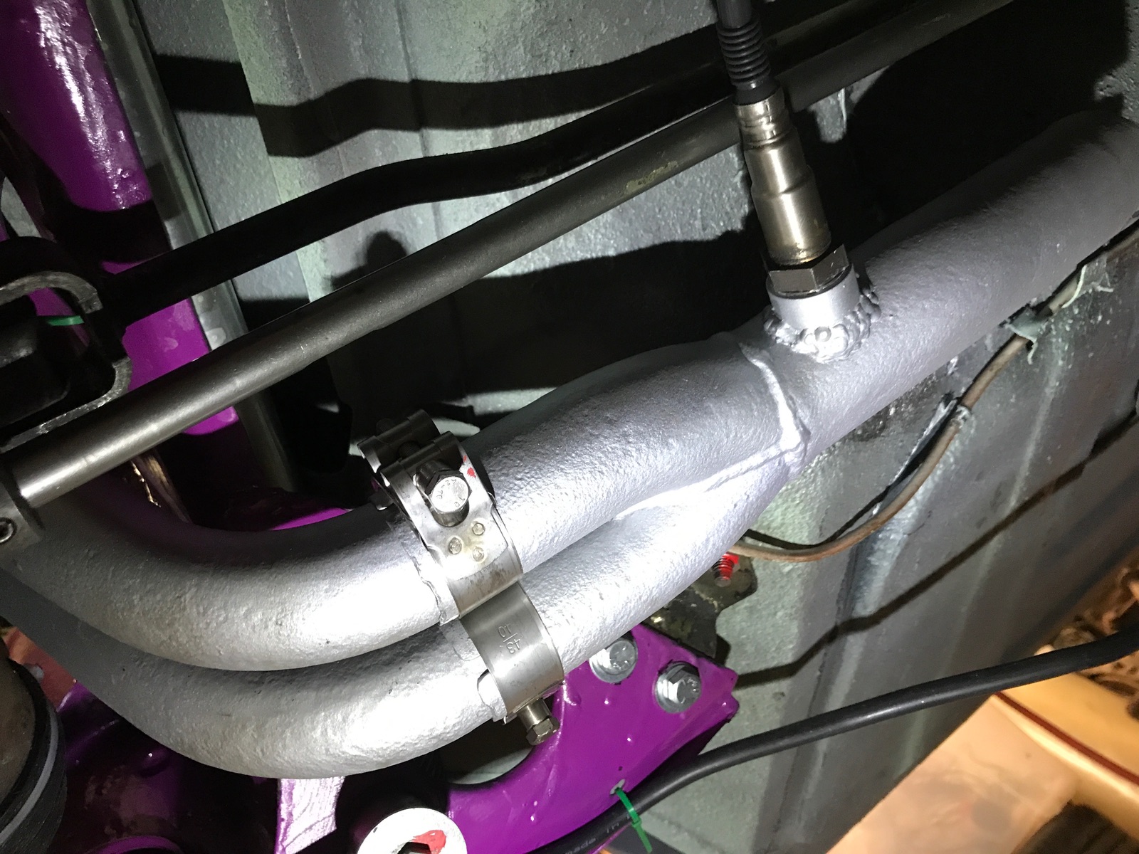 Deshalb dachte ich mir ich platziere die Sonde da wo das Rohr von dem Y-Stück des Fächerkrümmers - es sollen die äußeren zwei Zylinder gemessen werden,