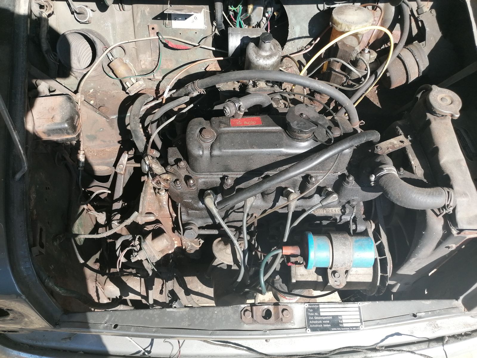 Die Motoranbauteile habe ich gestern, vor der Entscheidung zu verkaufen, noch demontiert um den Antrieb auszubauen. (Motor und Getriebe hängen nur noch an den unteren Befestigungen). Und die abgebauten Teile sind vollständig dabei.