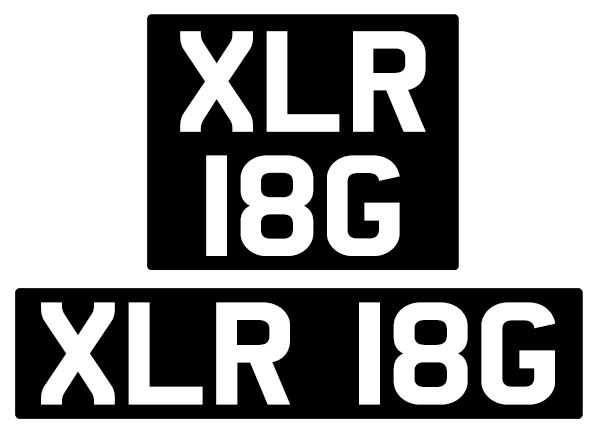 Ich habe daher den schwarzen Rand beschnitten und den Abstand zwischen XLR und 18G geringfügig erhöht. Somit war das Kennzeichen nur mehr 44 cm breit. Außerdem habe ich noch eine zweireihige Version gemacht (305 x 235 mm) und ebenfalls beschnitten, bis es mir optisch recht war: