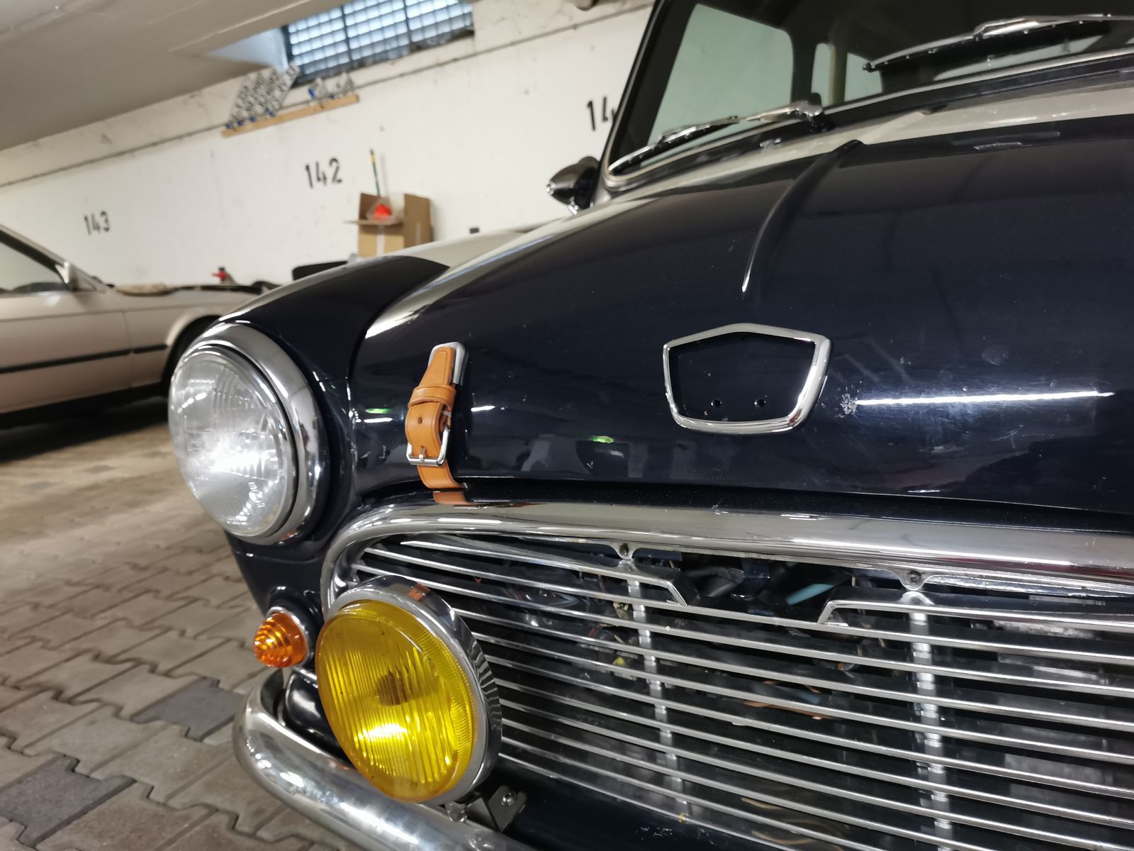 In other news: die Löcher in der Motorhaube stellen sich als passende Bohrungen für das frühe Austin Logo bzw dessen Chromrahmen heraus :starry_eyed: also kann ich die Löcher wieder zu 100% verdecken. Die Chromblende kam in weniger als 24h ab Bestellung von Mini Mania, top Performance!