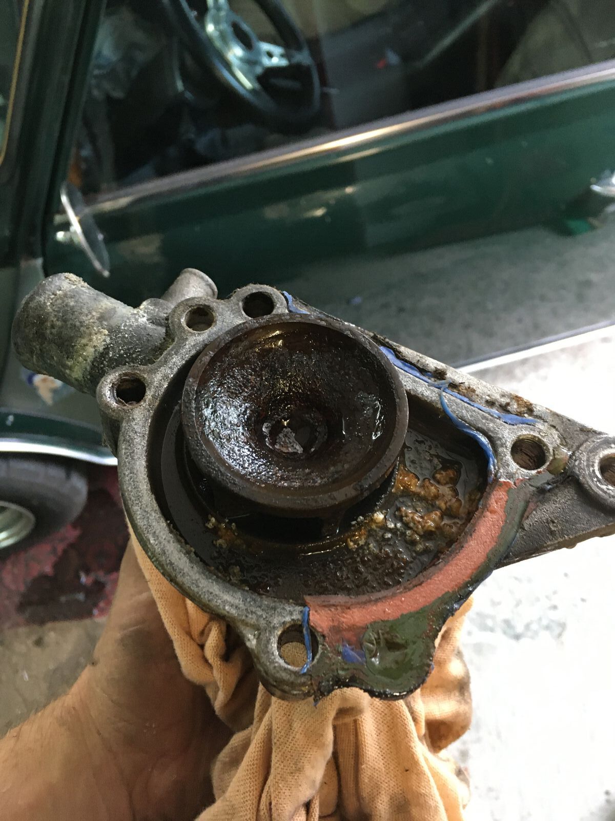Und dann dachte das Leben: Planung ist das wo die Realität dir den Mittelfinger zeigt! Wie das Leben so spielt forderte mein grüner Mini auch wieder Aufmerksamkeit. Nachdem wir beim TÜV ein komisches Pfeifen gehört hatten, es aber nicht lokalisieren konnten war ich eh schon aufmerksam. Ein wenig Wasserverlust war auch zu spüren. Lange Rede kurzer Sinn, kaum in der Halle angekommen hatte der Kleine keinen Bock mehr und dampfte aus der Wasserpumpe…also wechseln wir mal fix die Pumpe. Hatte ich zum Glück schon auf Lager.