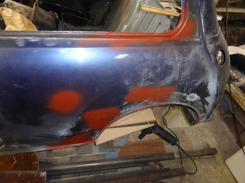 Auf dem Weg dahin musste zur Übung erstmal ein kleines Loch unter der hinteren Seitenscheibe verschwinden...und die Löcher der Verbeiterungen müssen auch erstmal weichen.