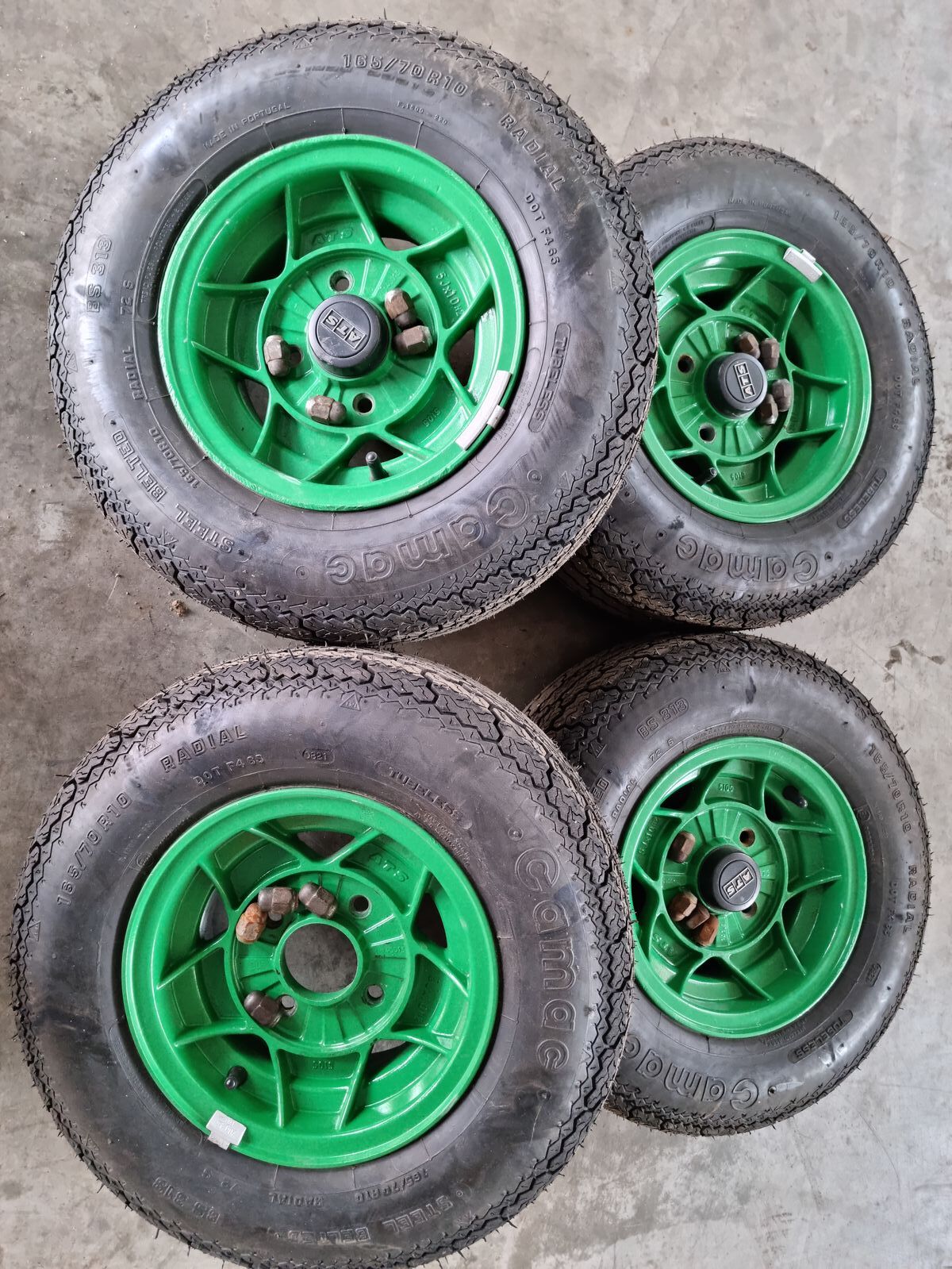 Da der TÜV meint das diese Bereifung etwas zu breit für meinen VAN ist, verkaufe ich ein Satz ATS Alufelgen 5J10 mit neuen 165/70R10 Reifen inkl. Radmuttern und drei ATS Kappen