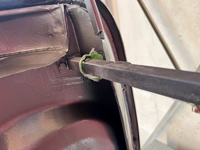 Das Gestell ist geteilt, so dass man die Karosserie vom unteren Gestell abheben könnte.