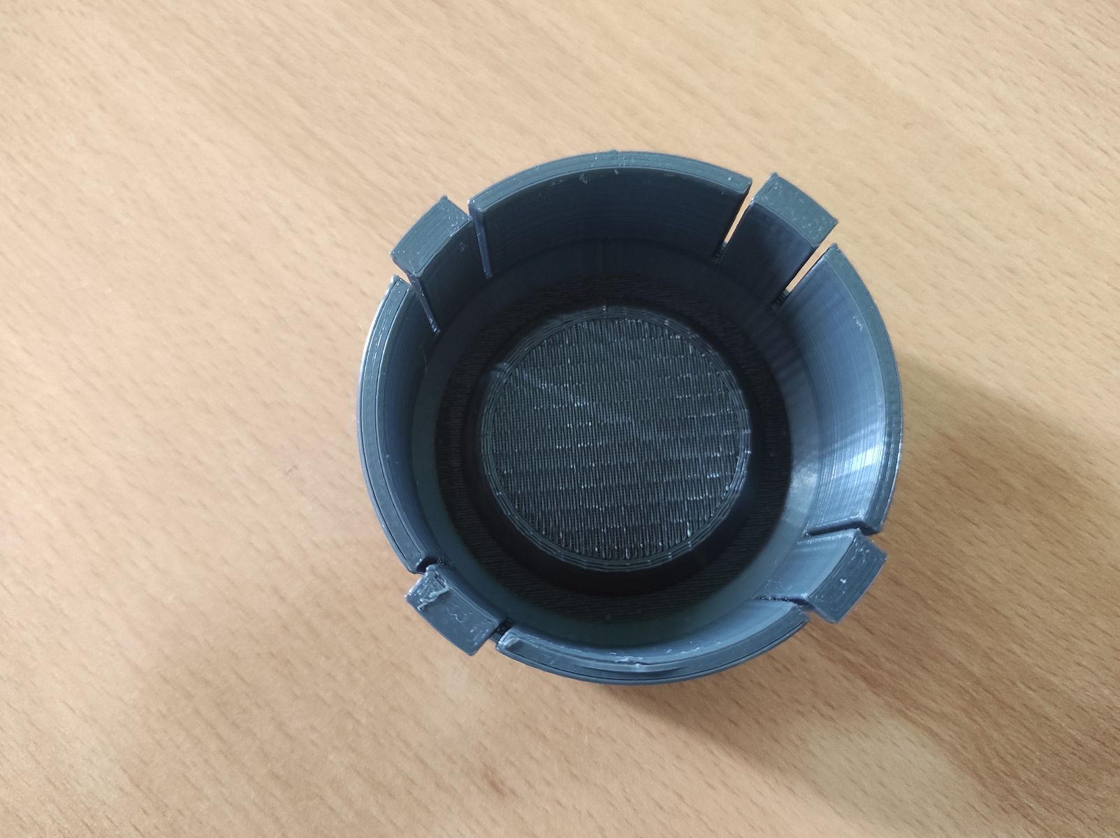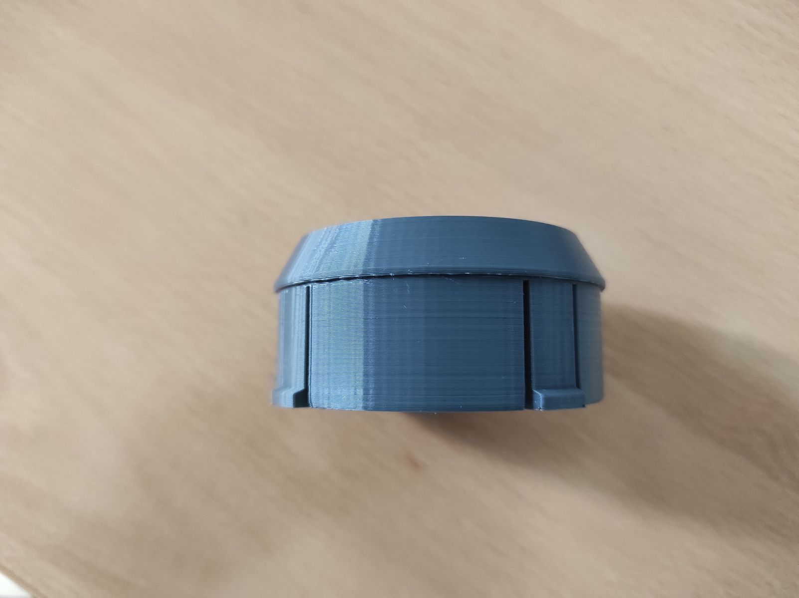 Leider nur aus PLA, bei der Testrolle grauem PETG hatte ich ne grottige Layerhaftung, da sind die Nasen sofort abgebrochen. Hier muss ich nochmal ran und die Biegestelle verjüngen. Die Kappe ist durchgängig 3mm stark und rastet mit nem satten "Plop" ein.