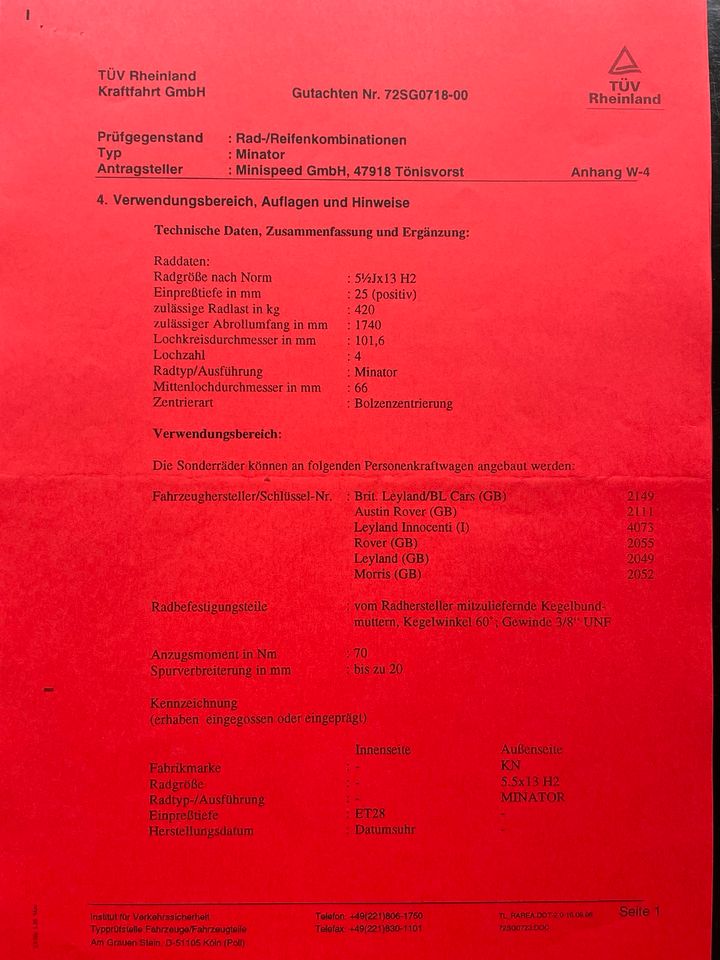 Suche Gutachten Minator Felgen