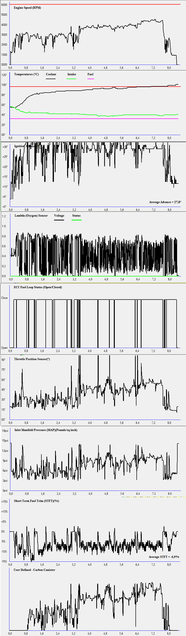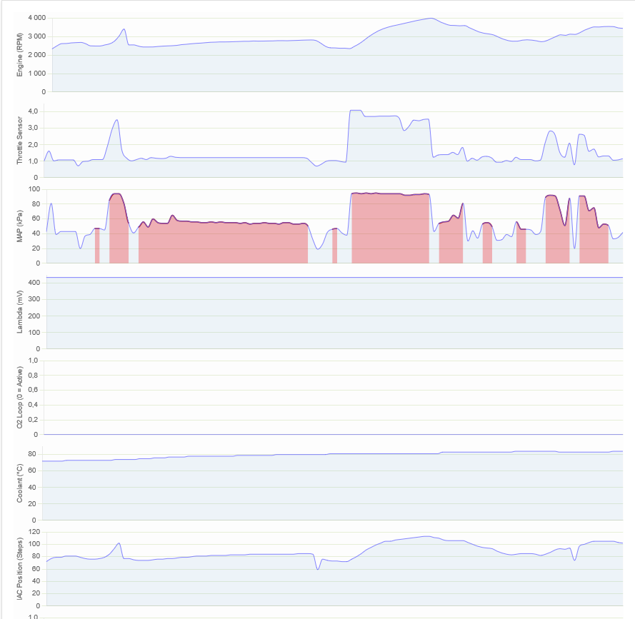 Beim MEMS_FCR Test konnte ich trotz Autobahnfahrt keine 88°C erreichen (am Sonntag war es kühler)-> keine Lambdaregelung erkennbar?
