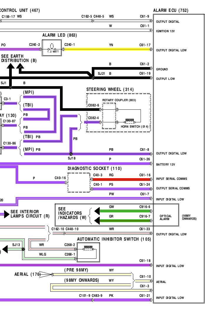 So, habe eben nachgeschaut: Bei Modellen >98MY ist im Gehäuse der Alarm-ECU ein weiterer Steckplatz (und Stecker) mit Grün/Weiß und Grün/rot - die weiteren Kontakte sind leer. Weiter fiel mir auf, daß die Sender-/Empfängerreichweite der Fernbedienung deutlich höher ist.