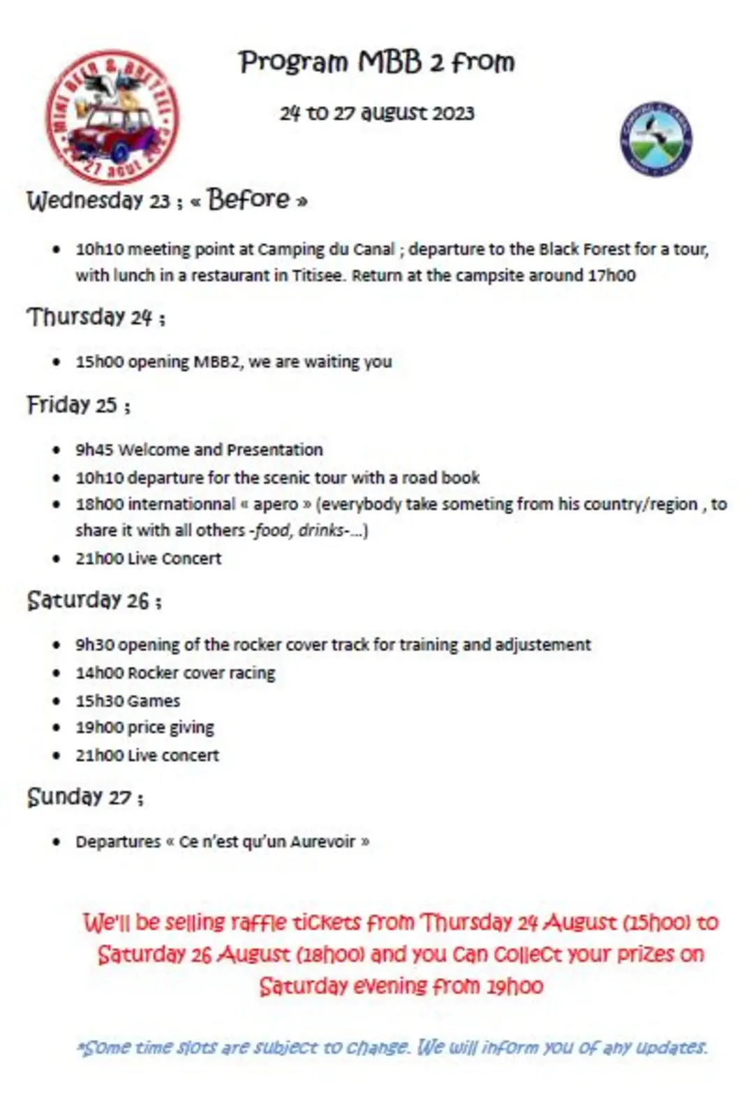 - 50 euros per person (including camping fee and a Welcome Pack)