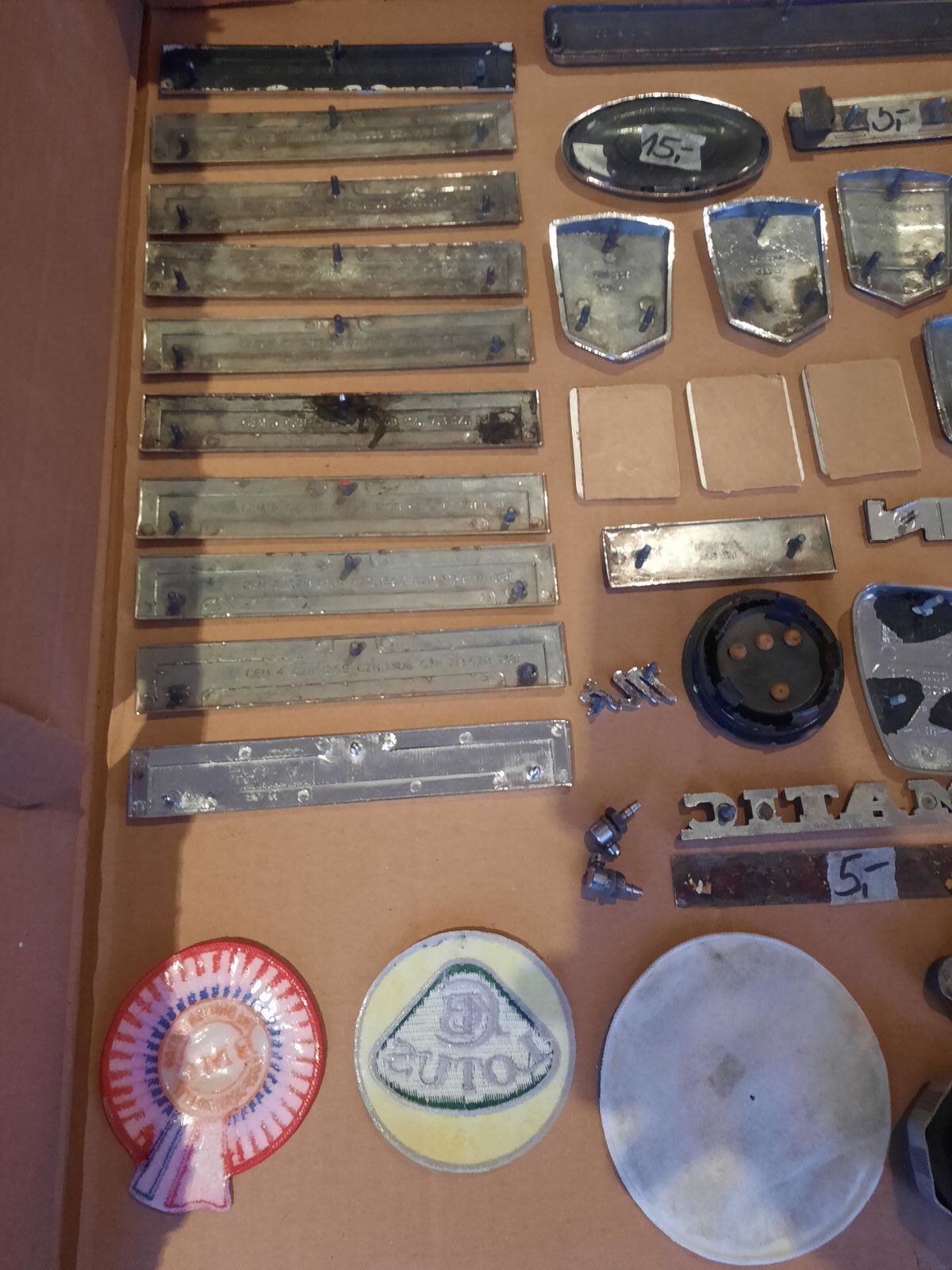Auswahl an gebrauchten Emblemen.