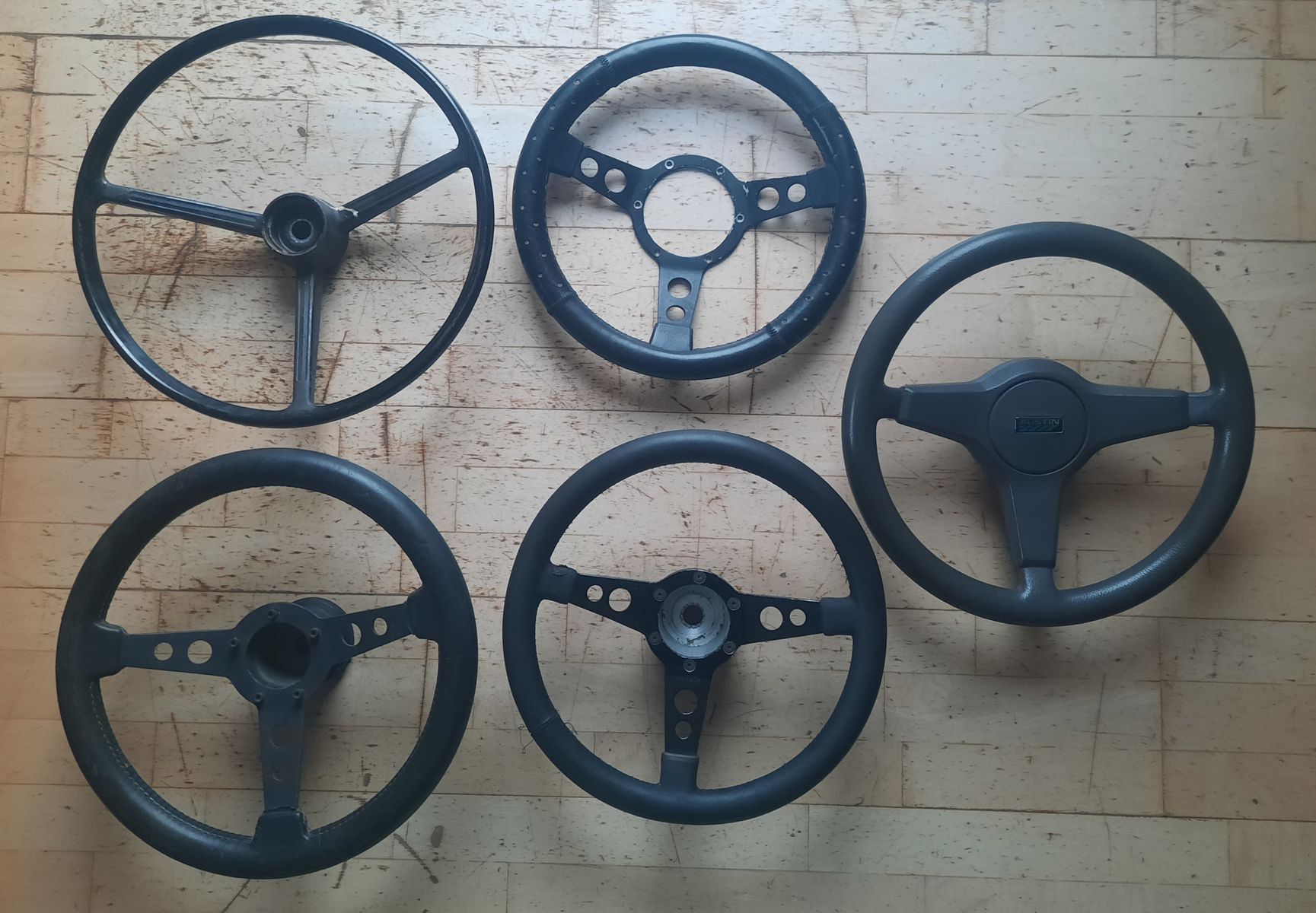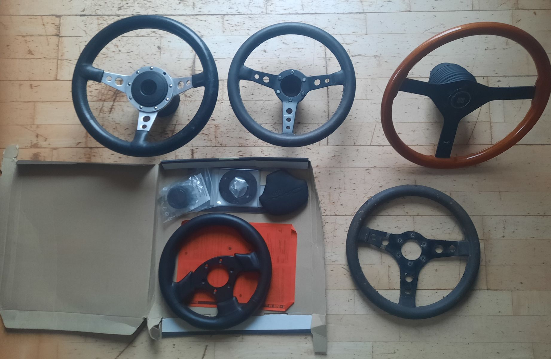 Bkete einige gebrauchte Lenkräder und ein neues an.