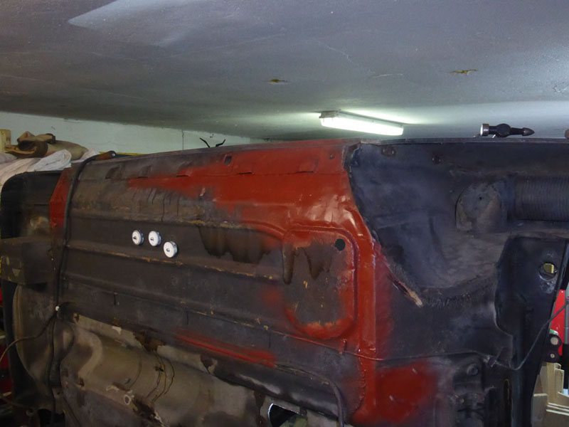 Ich würde am liebsten versuchen die Karosse auf die Seite zu legen, so könnte ich schön ohne Verrenkungen alles lackieren und danach die Brems- und Benzinleitungen verlegen.